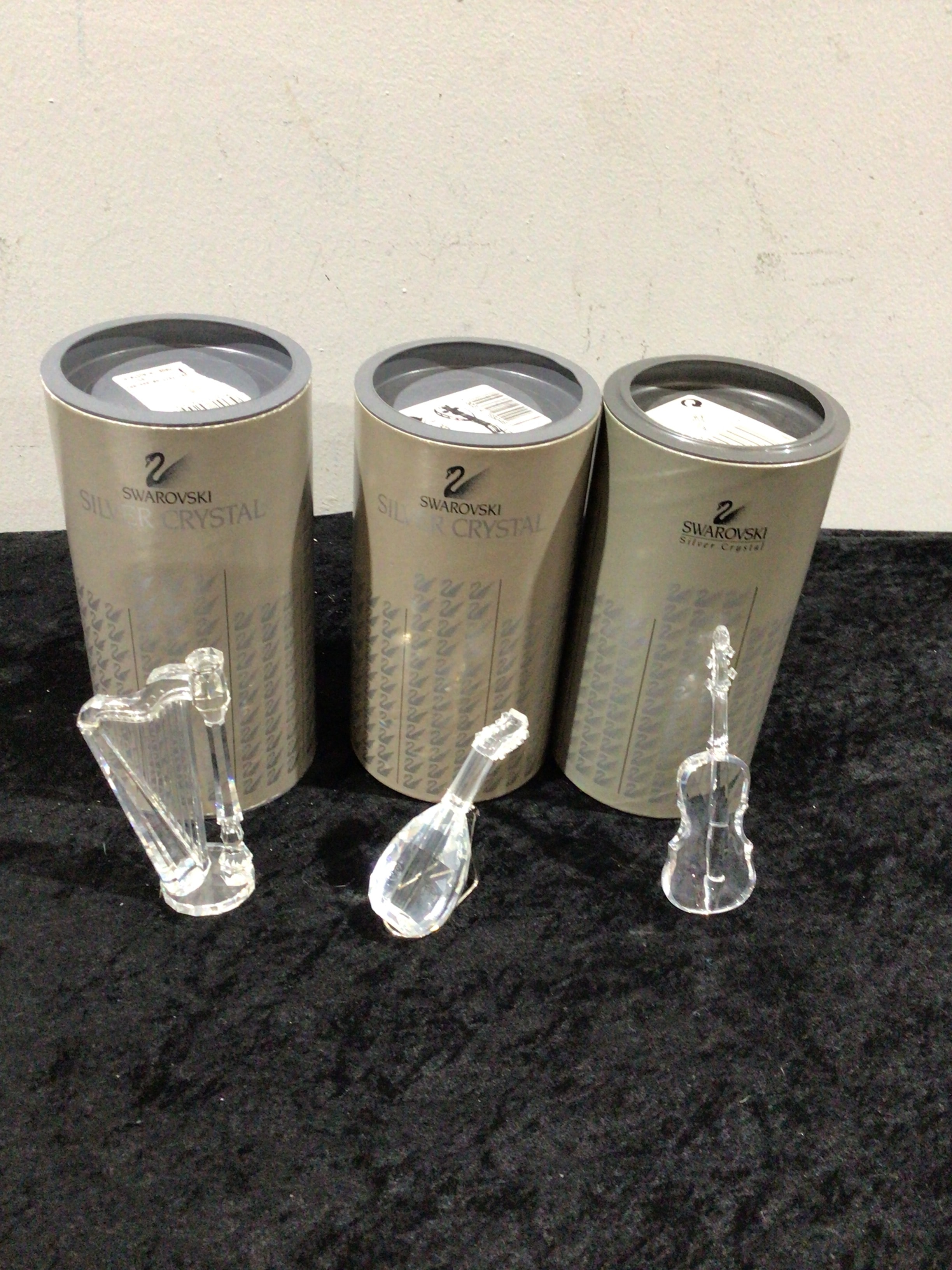 Three Swarovski Silver Crystal Musical Instrument Figurines