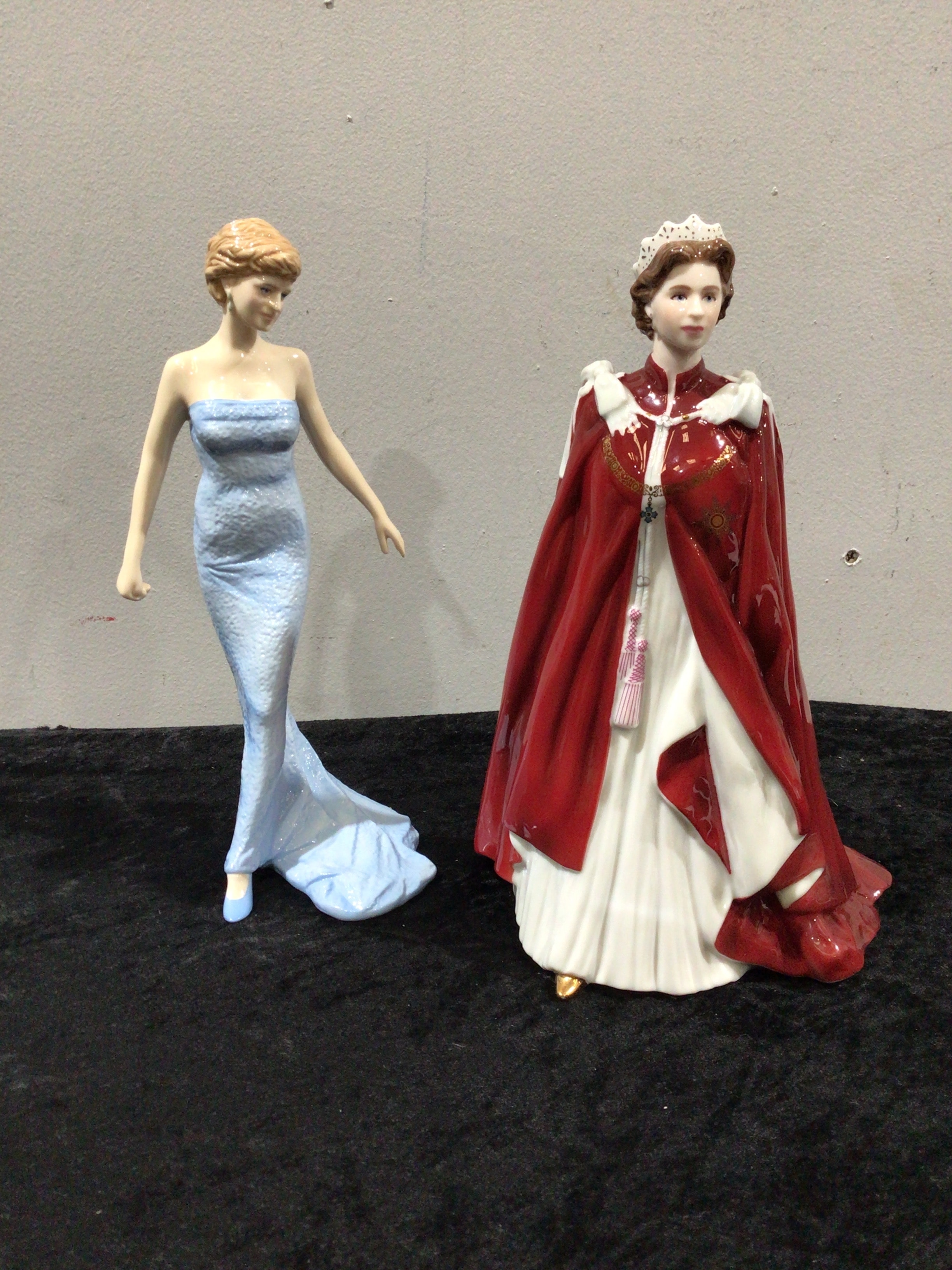 Royal Doulton Diana and Royal Worcester Queen Elizabeth II Figurines