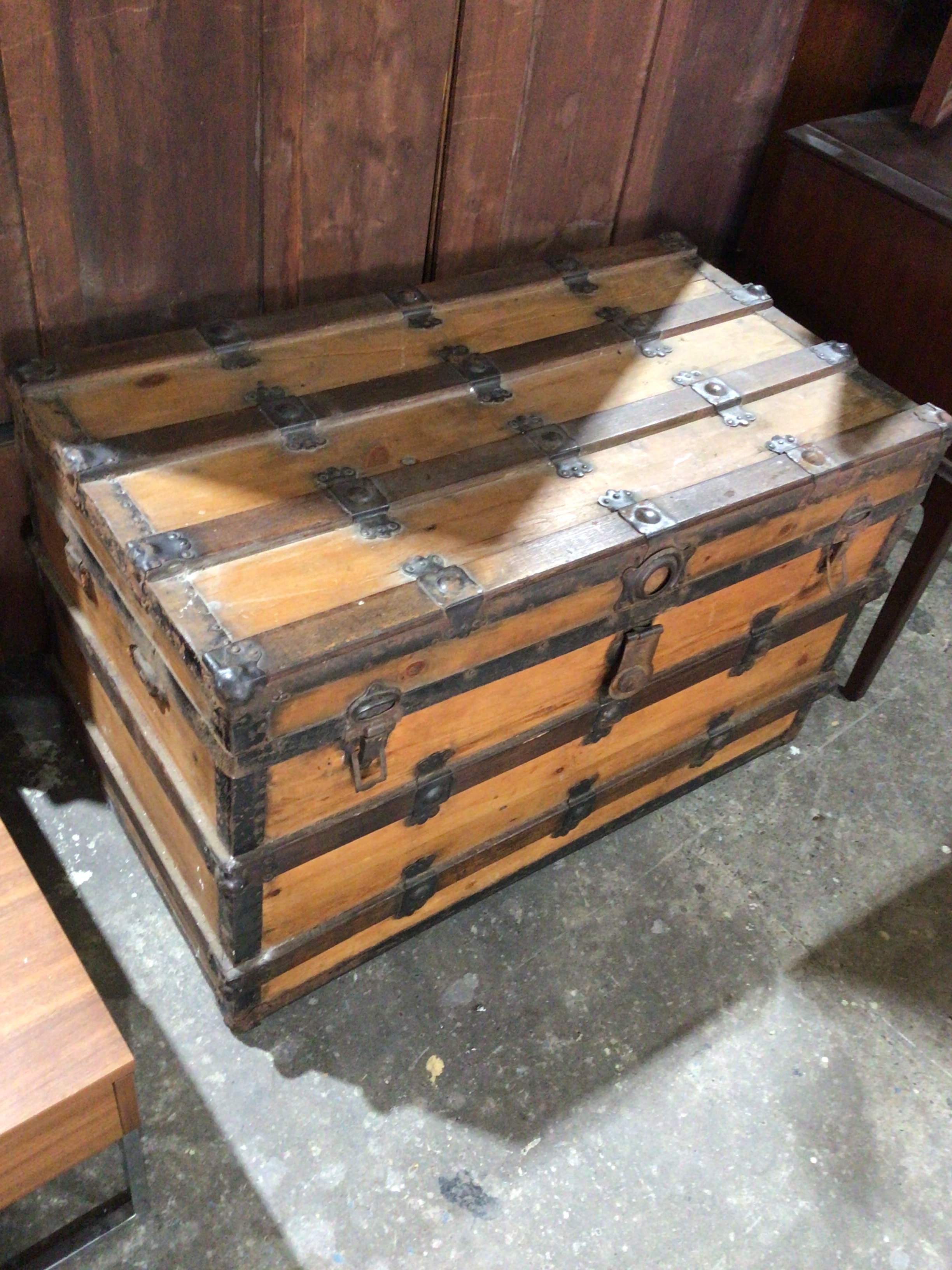 Light Brown Wooden Steamer Trunk