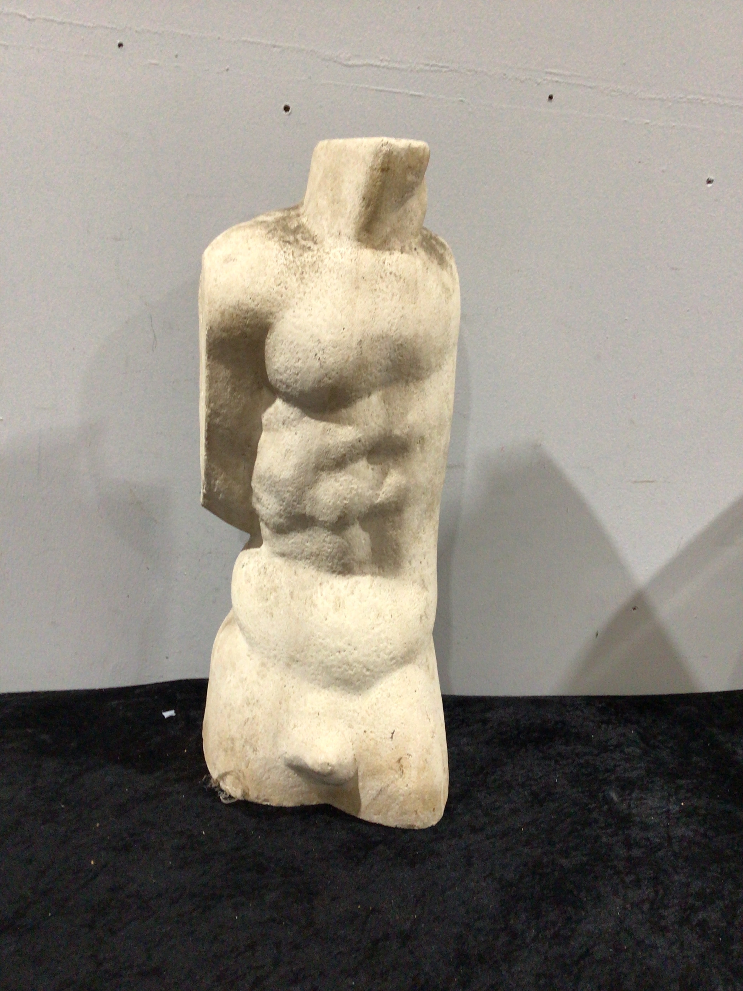 A Light-Colored Concrete Nude Male Torso Sculpture