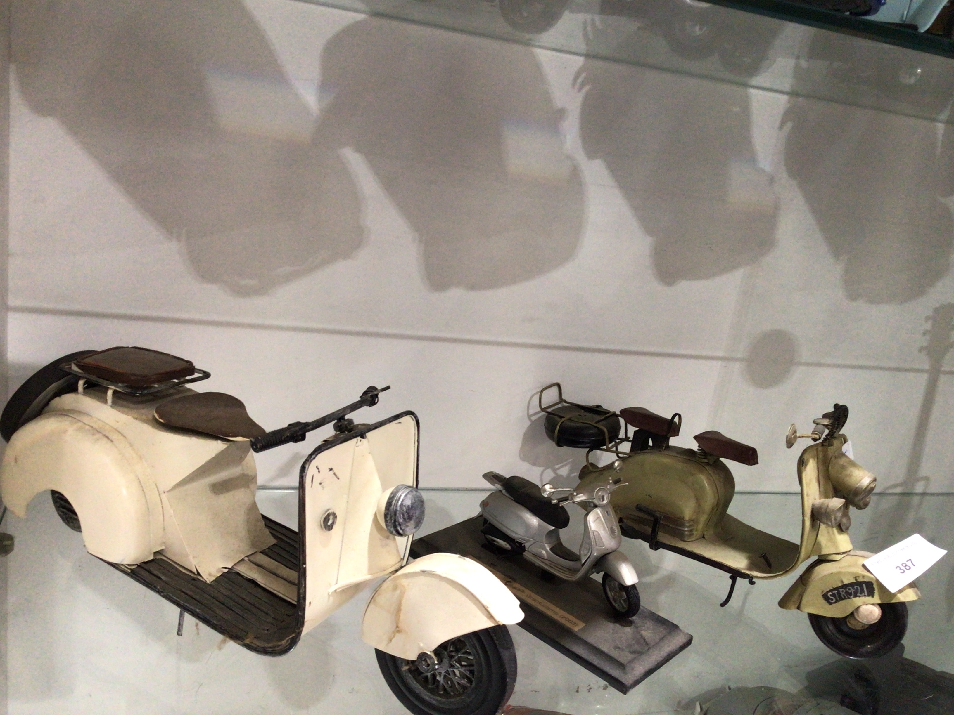 An olive green/khaki Vespa scooter model with brown seats and black wheels, bearing the inscription “STR921” on its front fender.