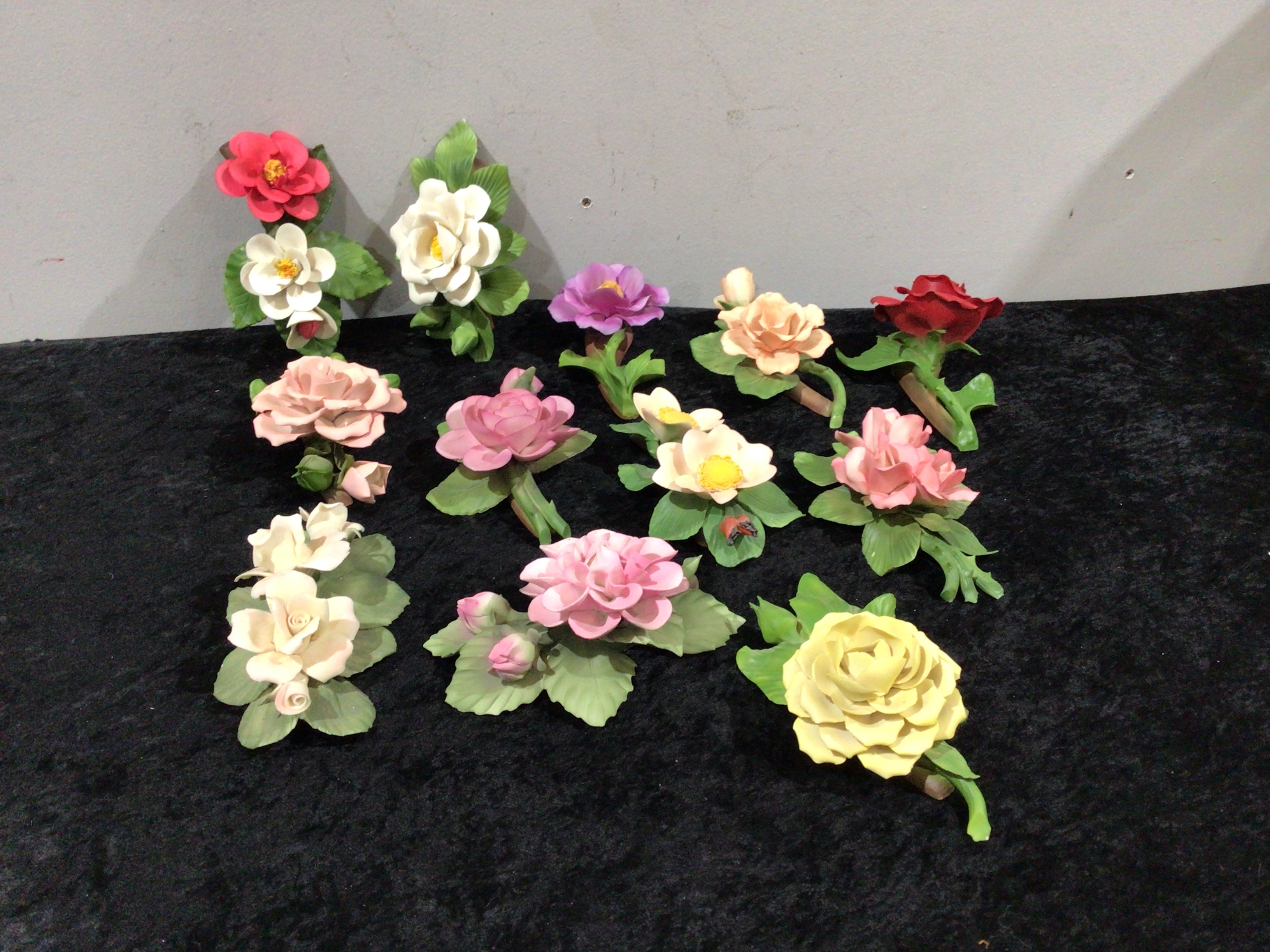 Thirteen Italian Capodimonte Ceramic Floral Decorations