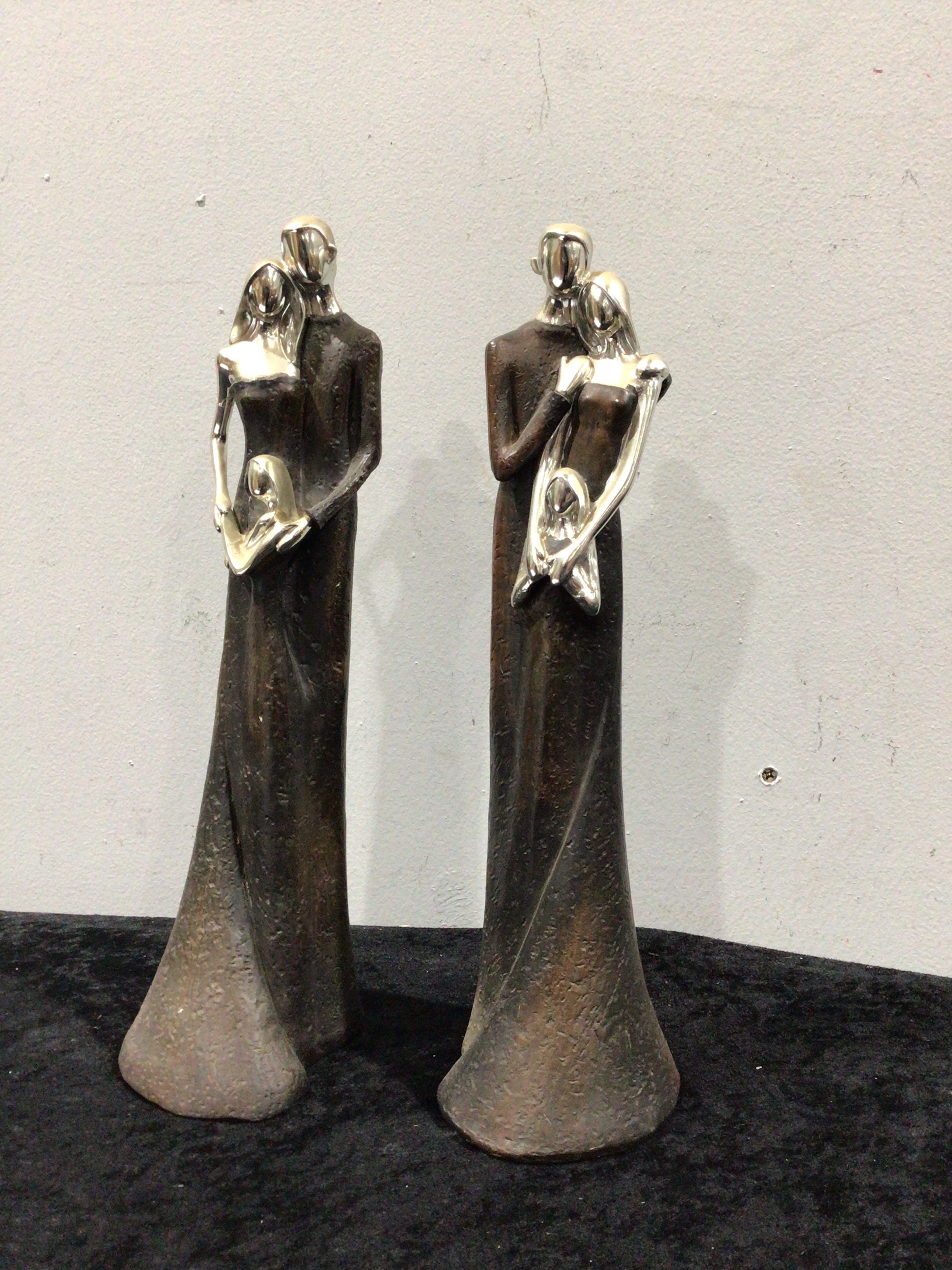 A Pair of Bronze and Silver-Tone Abstract Mother and Child Sculptures