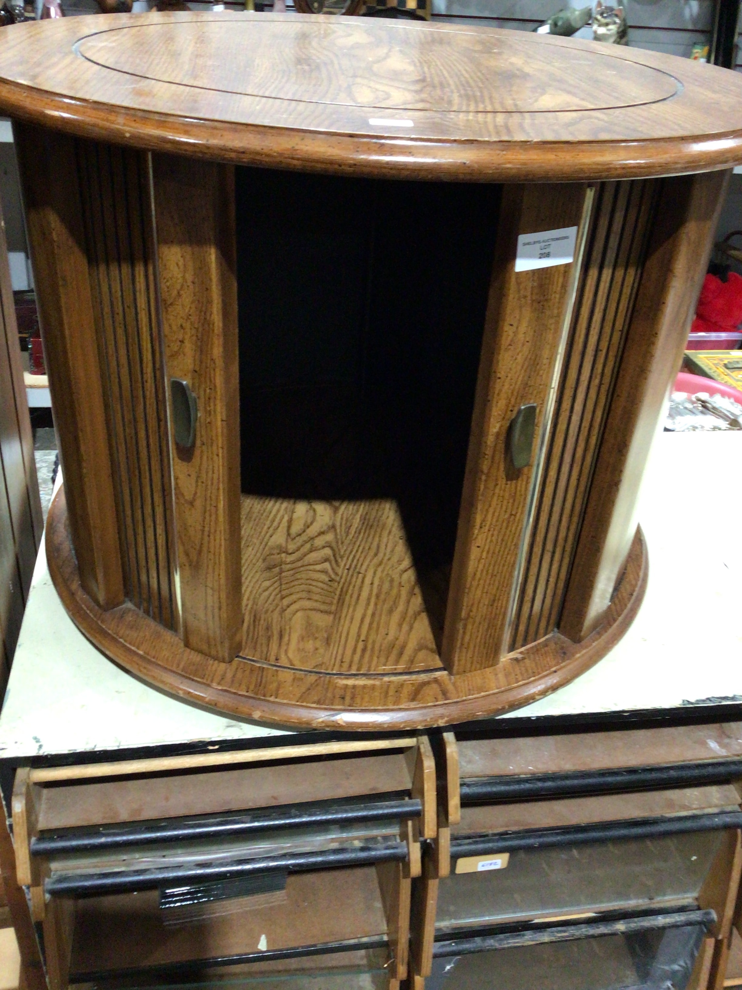 A Mid-Century Thomasville Round Drum Side Table Cabinet