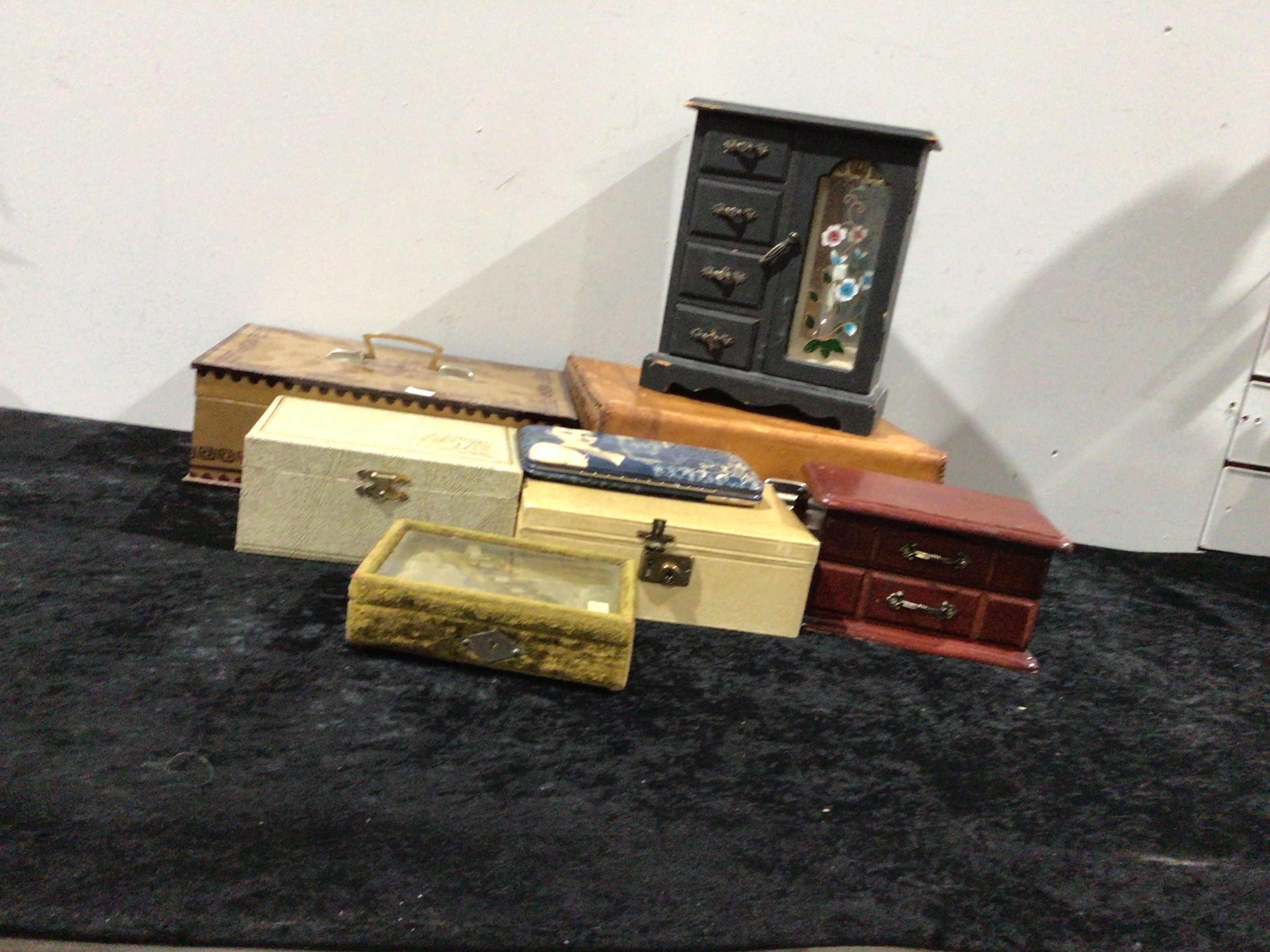 A Collection of Seven Vintage and Decorative Boxes, including Jewelry Cabinets