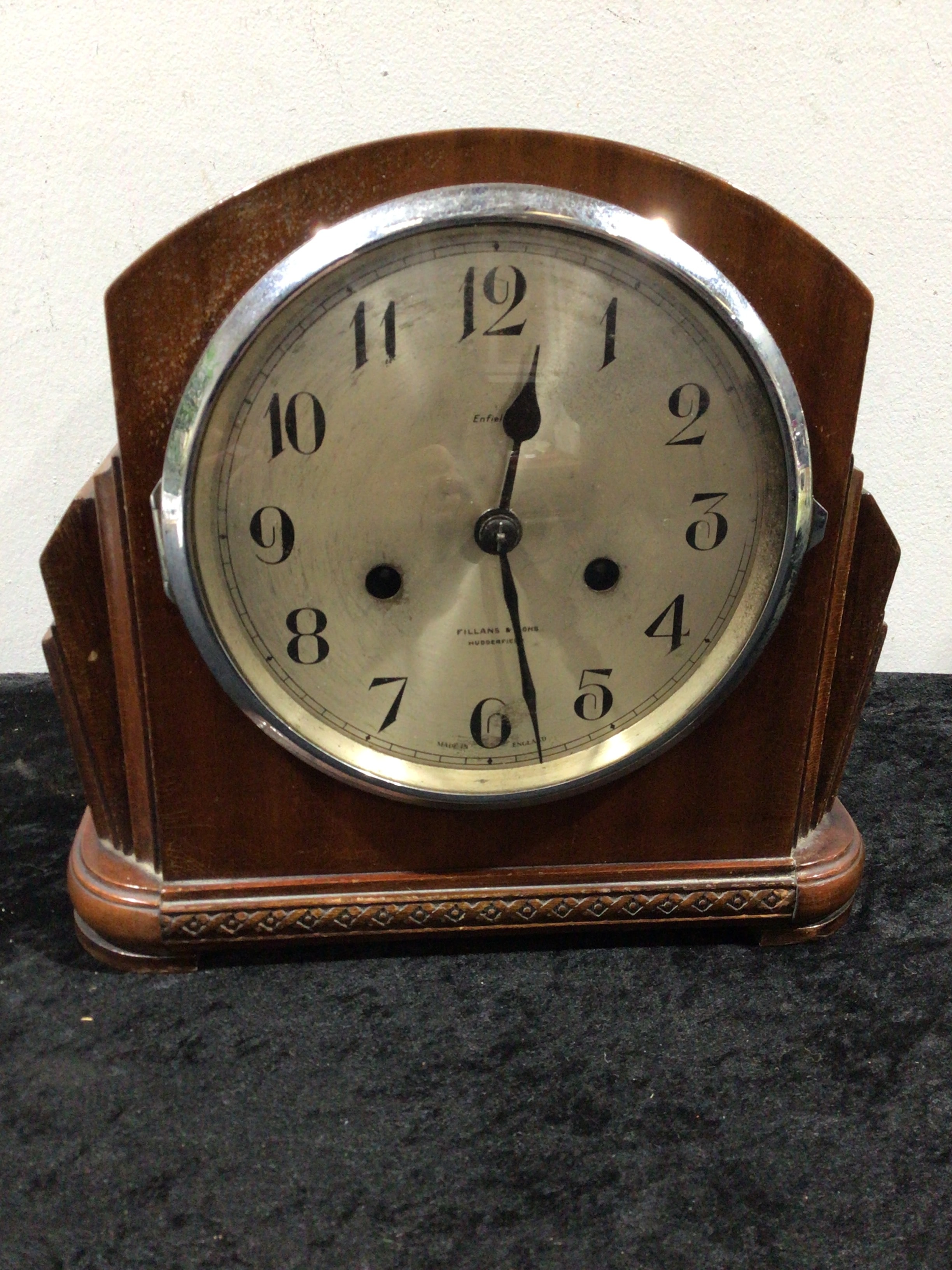 An Art Deco Style Enfield Wooden Cased Mantel Clock, retailed by Fillans & Sons Huddersfield, Made in England