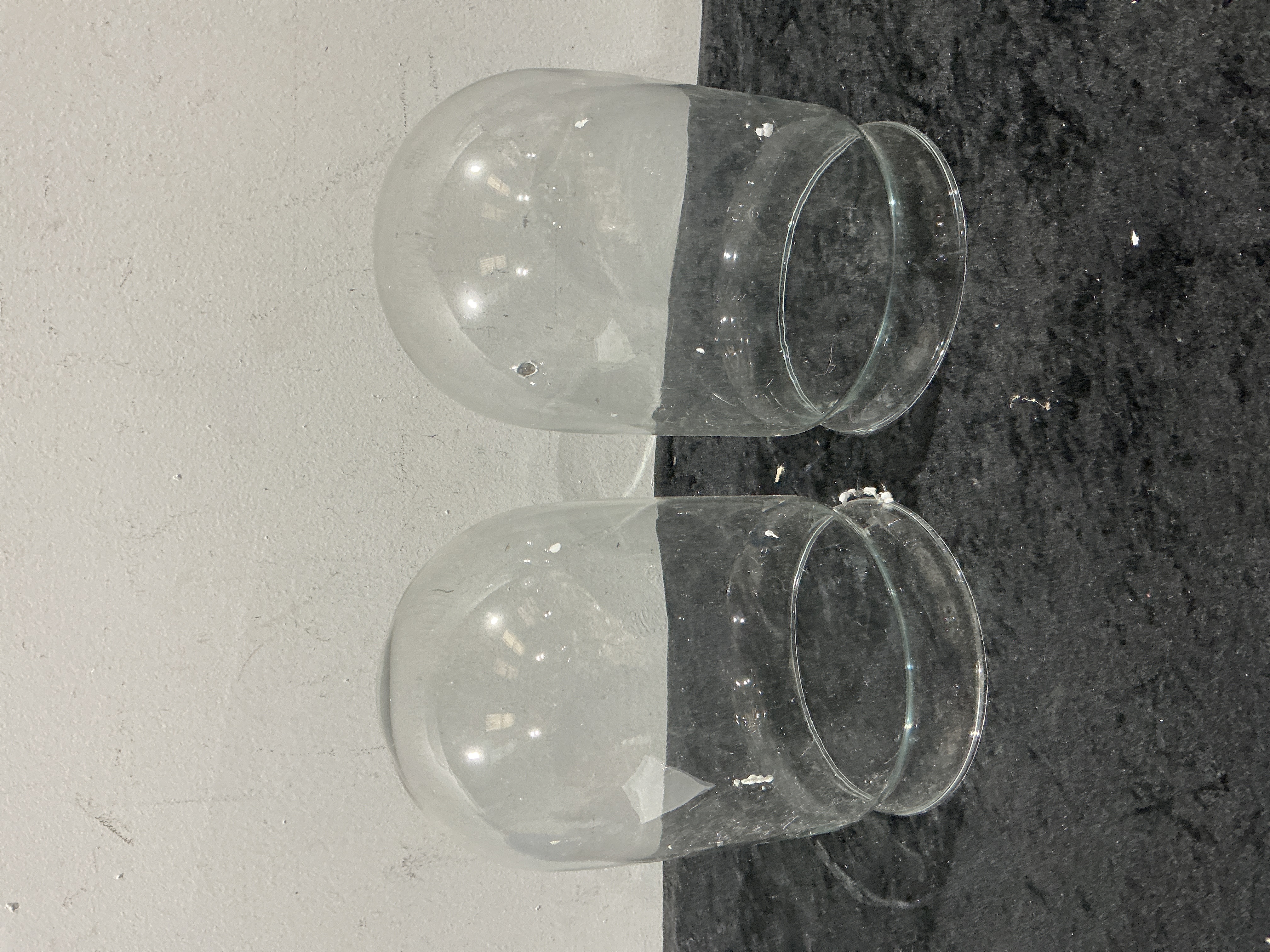 A collection of 15 replacement glass light fittings, designed as clear glass globes or shades intended for light fixtures such as pendant lights, wall sconces, or chandeliers. Each item is constructed of thick, colorless glass, featuring a rounded dome top leading to cylindrical sides and terminating in a continuous, slightly flared base rim, consistent with a standard fitter opening. The form is typical of modern or vintage replacement glass light fittings. No manufacturer markings, stamps, or inscriptions are visible on the examples inspected.