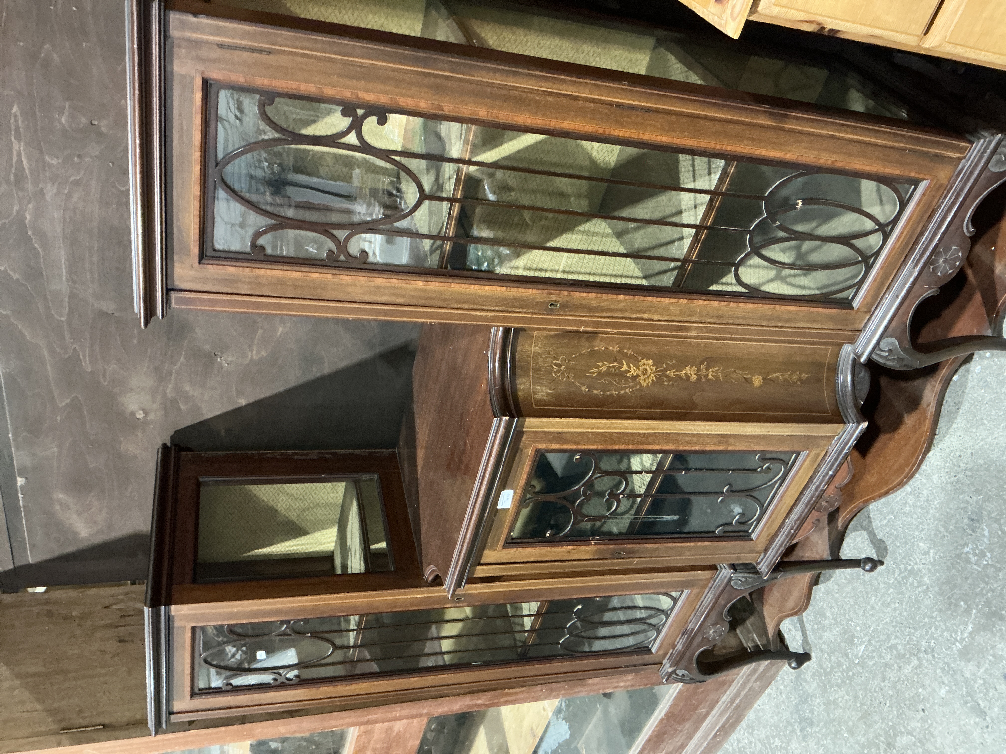 Late Victorian or Edwardian Revival Breakfront Curio Cabinet with Floral Marquetry