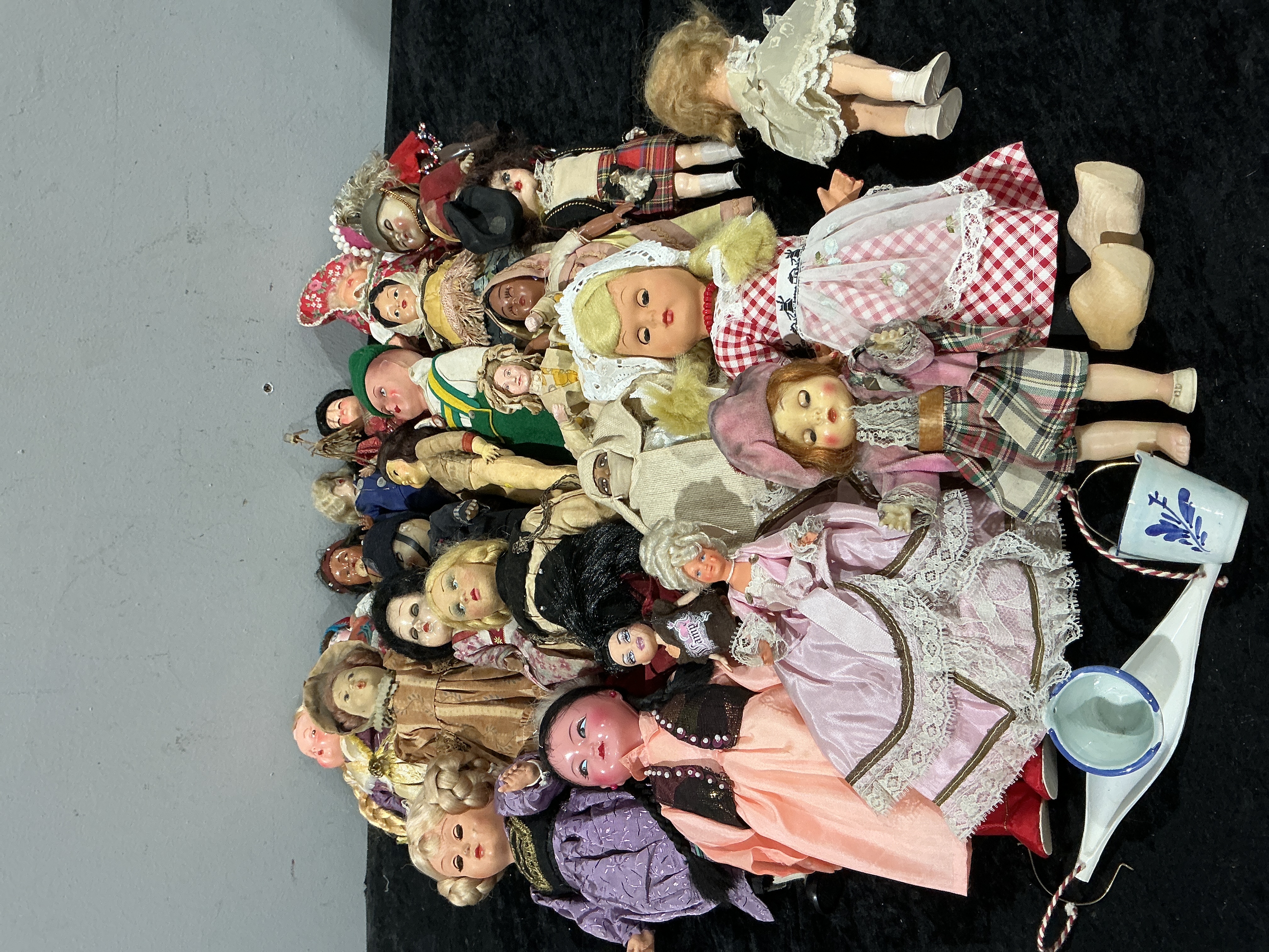 A Collection of 22 Vintage International Souvenir Dolls and Accessories