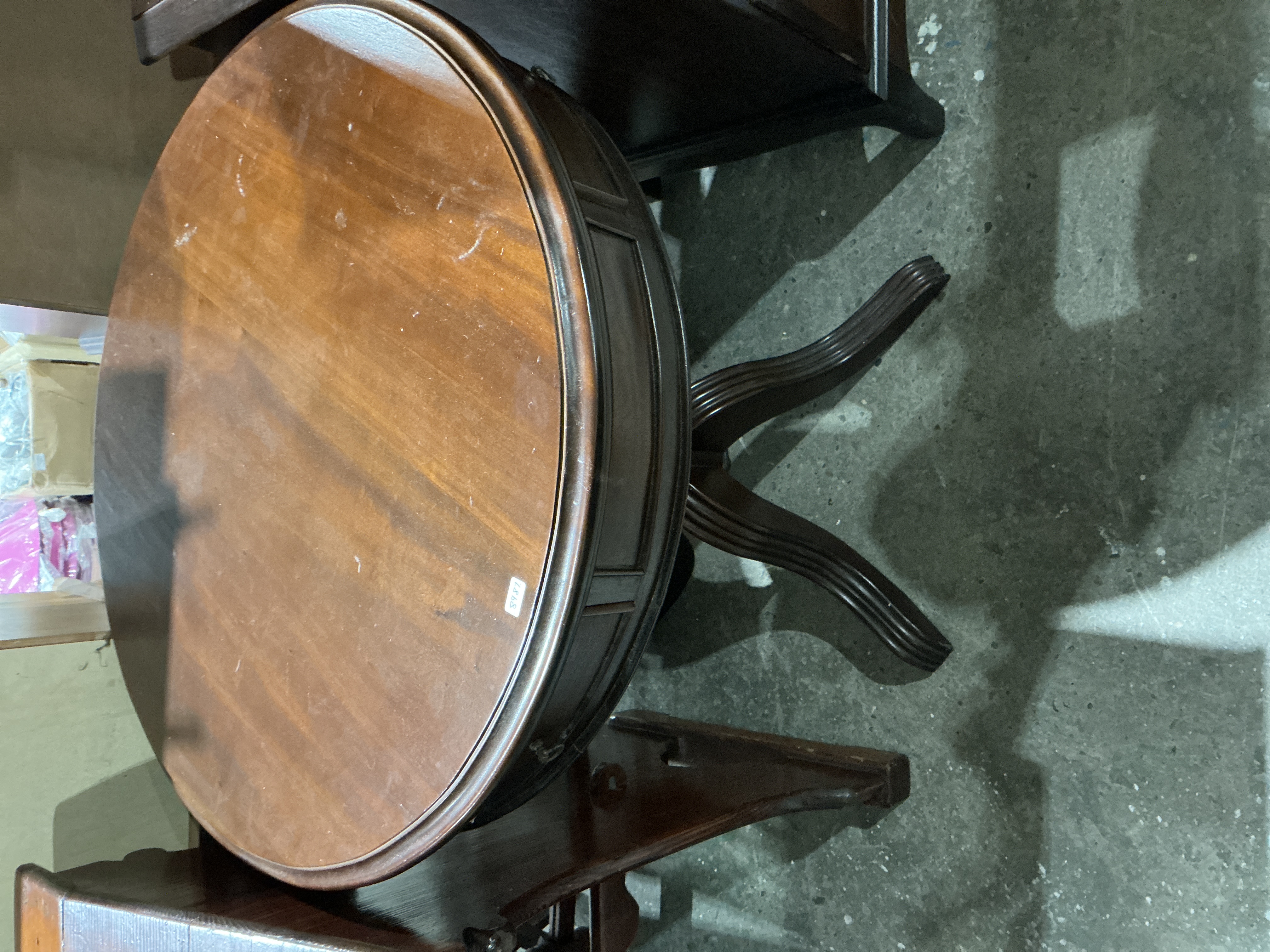 A Dark Finished Wood Pedestal Table with Tripartite Base