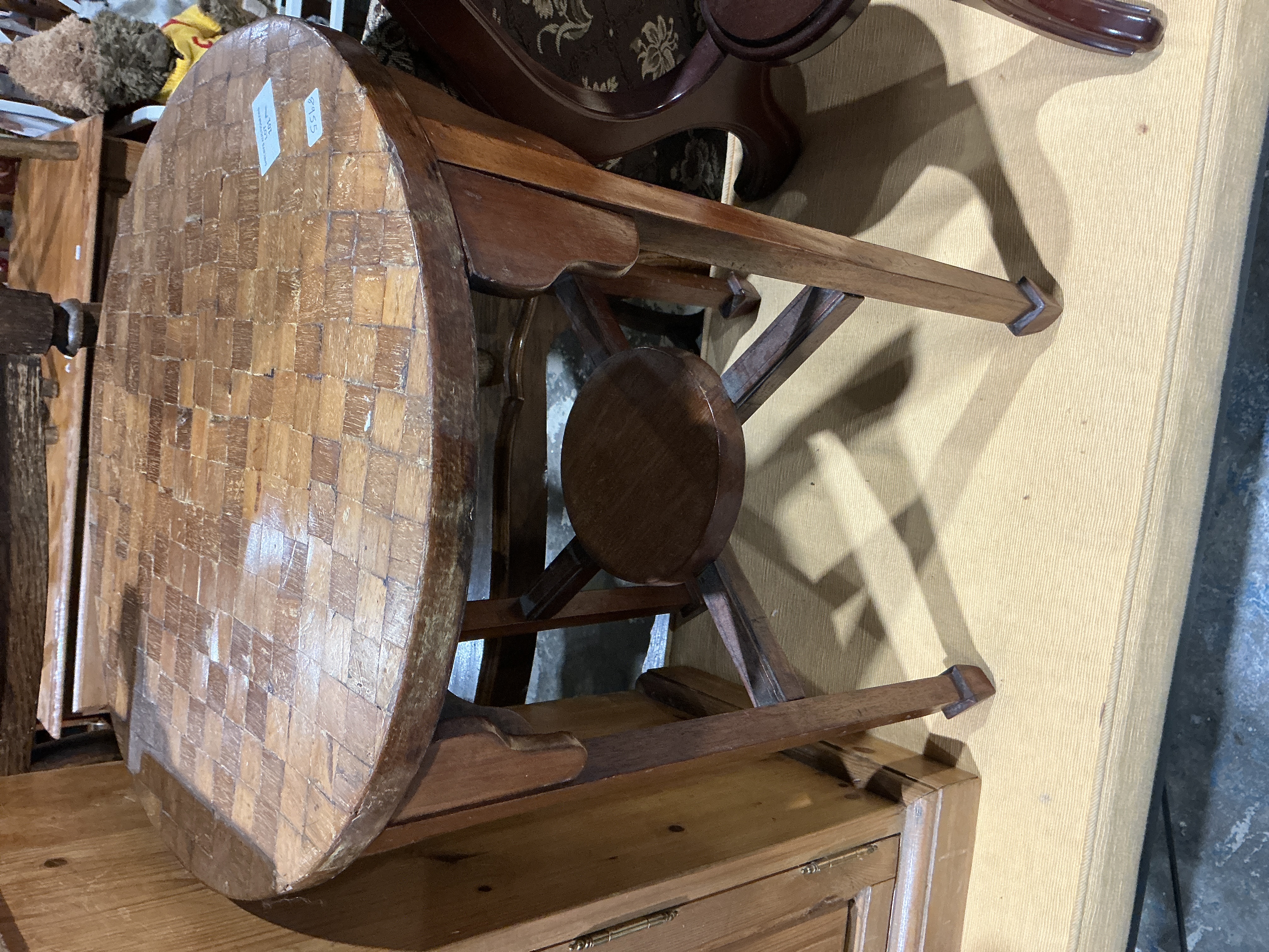 Vintage Art Deco Style Wood Occasional Table with Checkerboard Parquetry Top