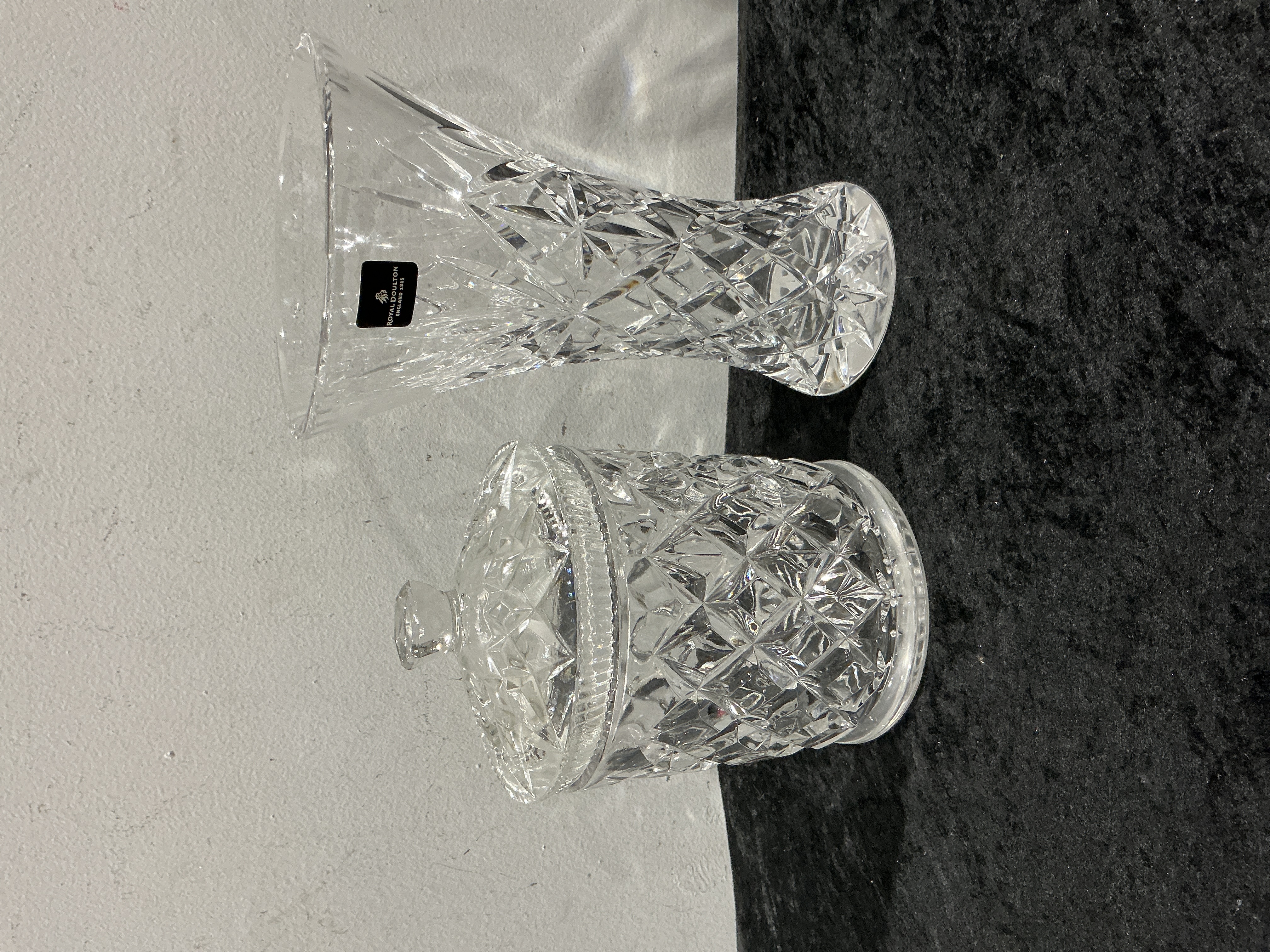 A Pair of Royal Doulton Cut Crystal Vase and Covered Biscuit Jar