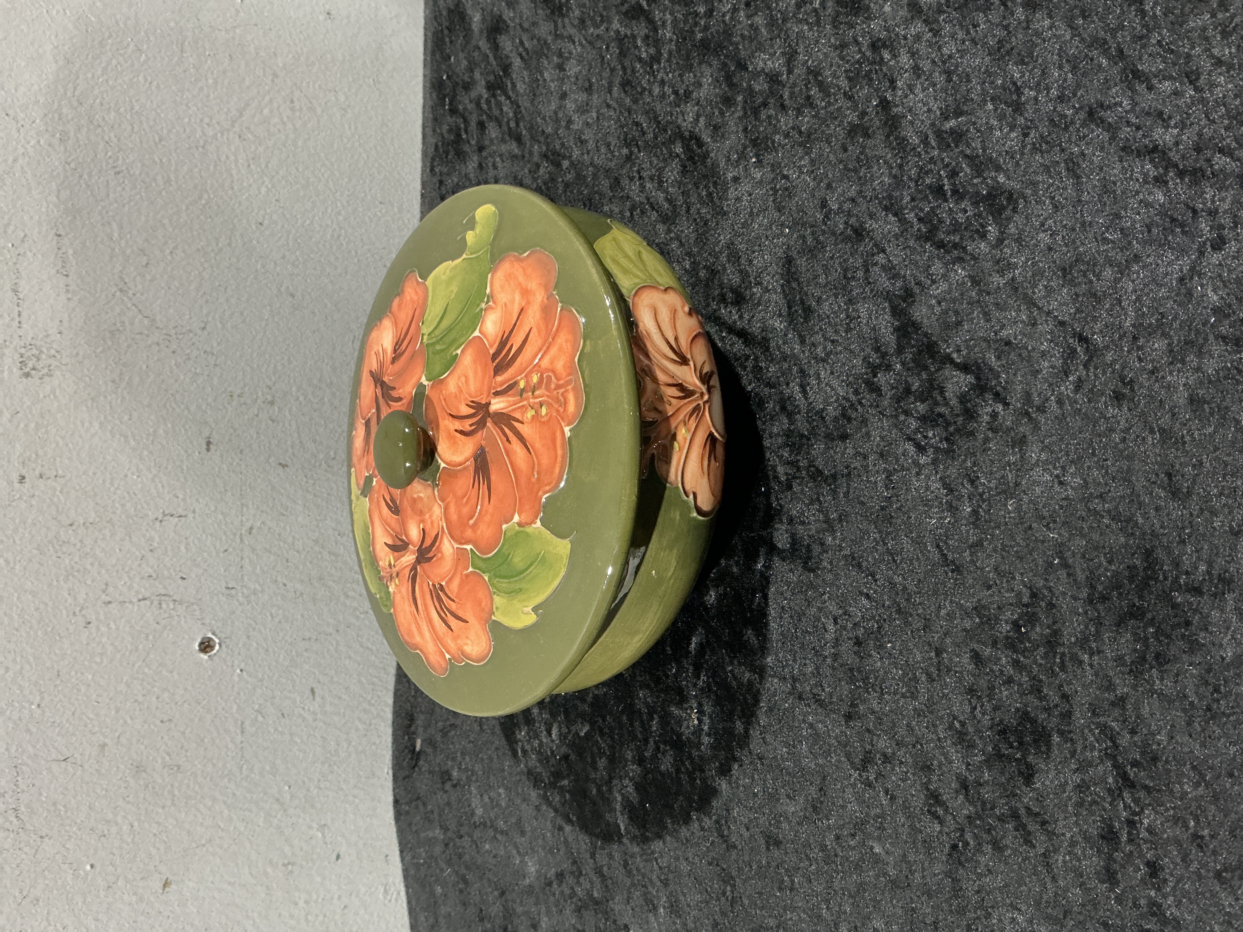 Moorcroft Pottery Hibiscus Pattern Covered Bowl
