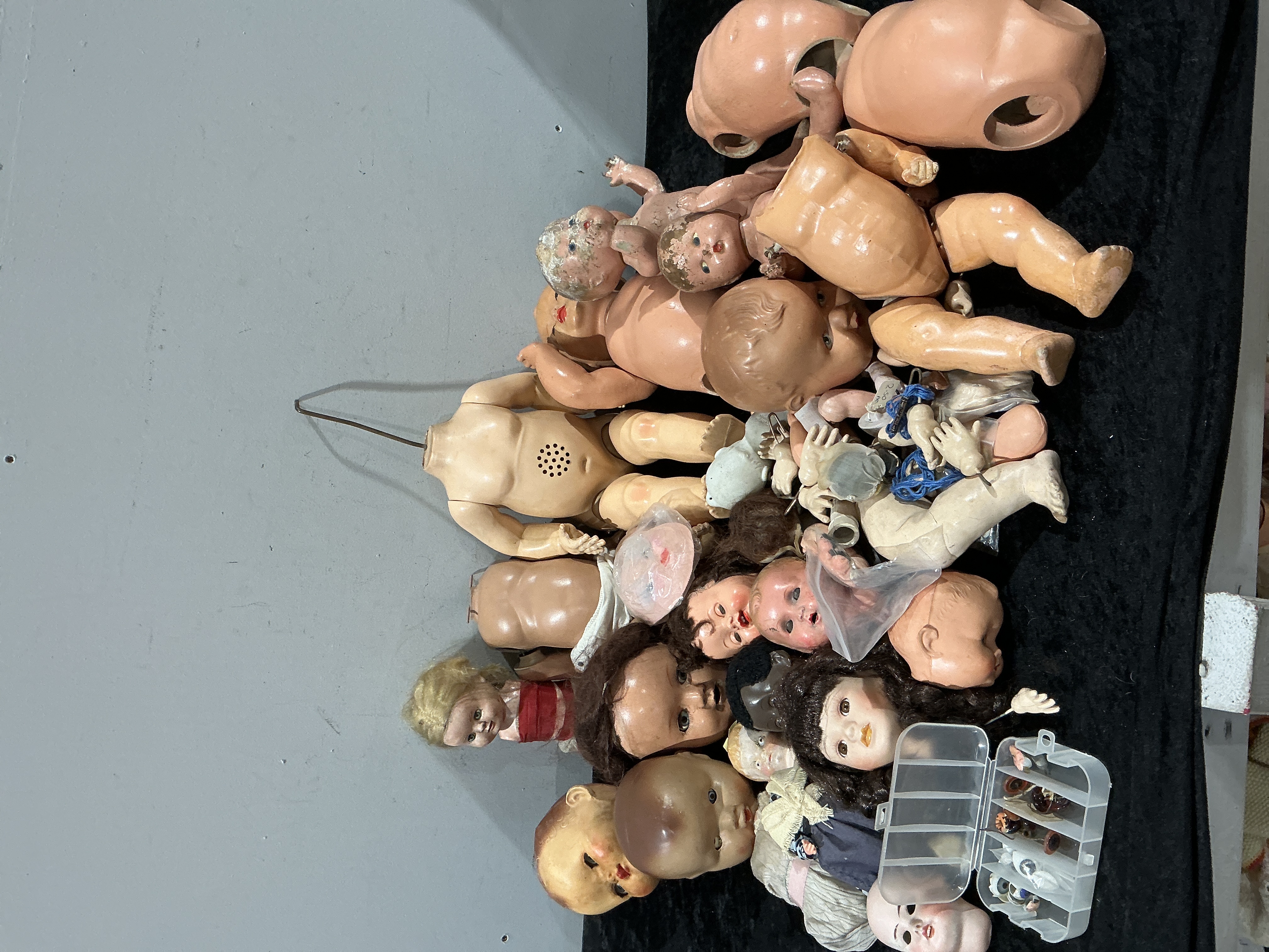 A Collection of 30 Vintage Doll Components and Fragments for Restoration, Composition and Hard Plastic, Mid-20th Century