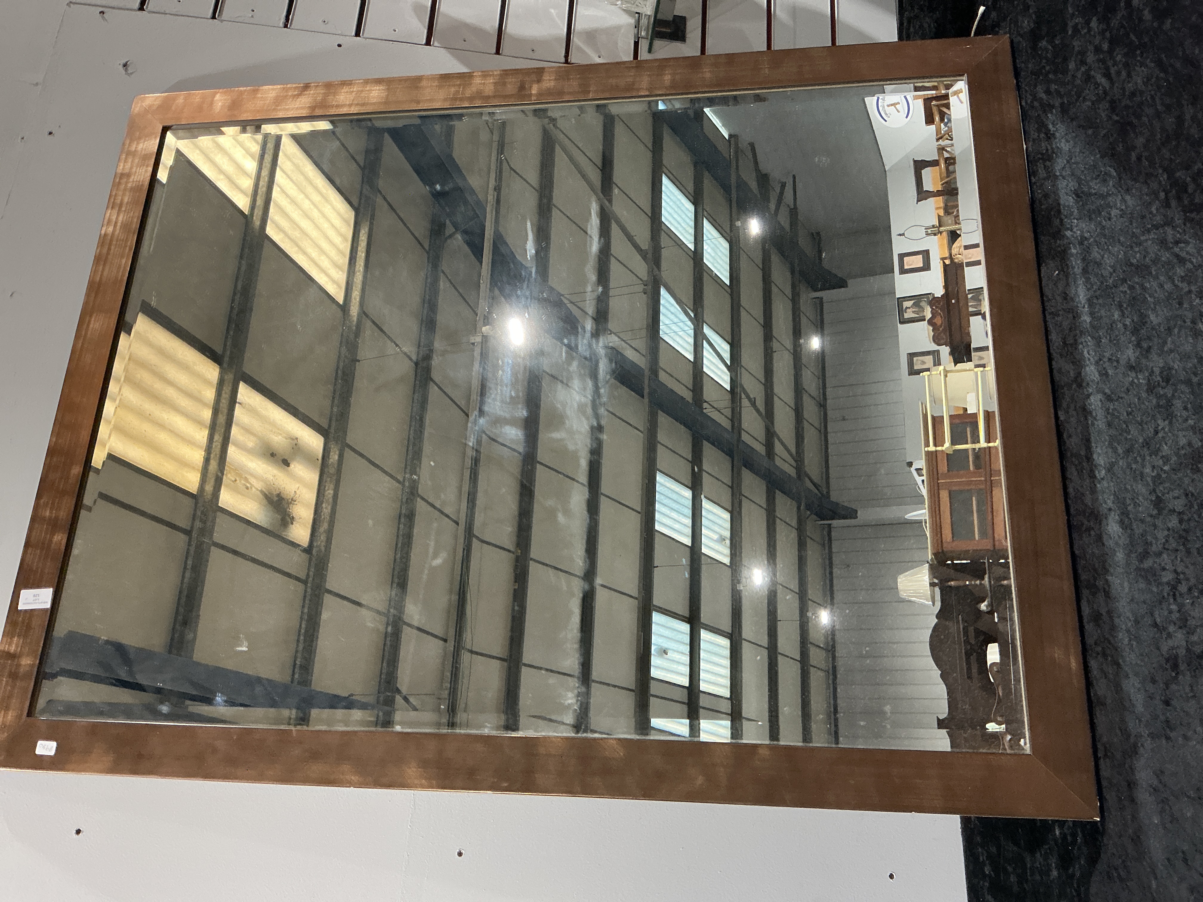 A Large Rectangular Wall Mirror with Polished Wood Frame