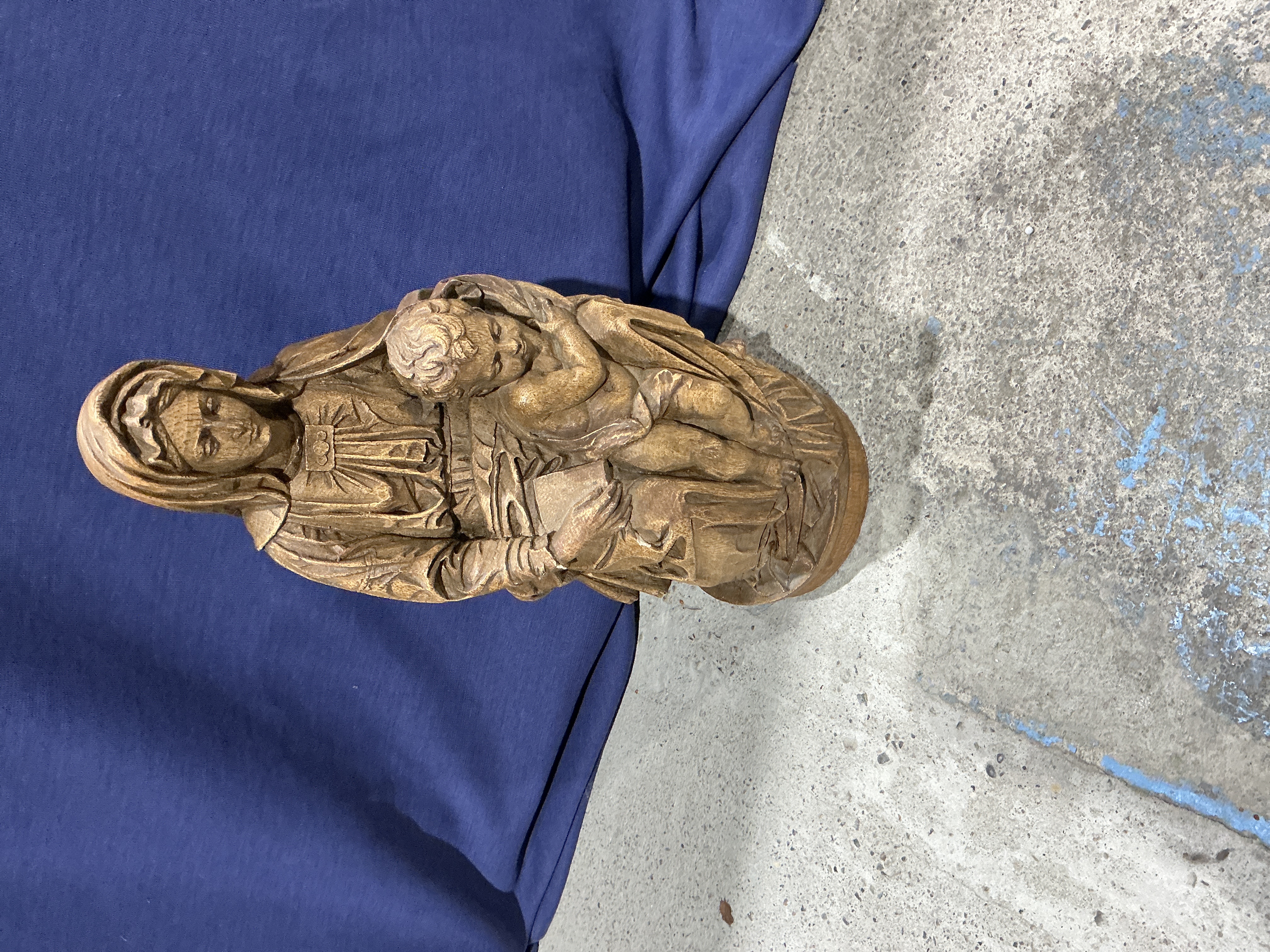 A Carved Wood Figure of the Virgin and Child with Saint Anne
