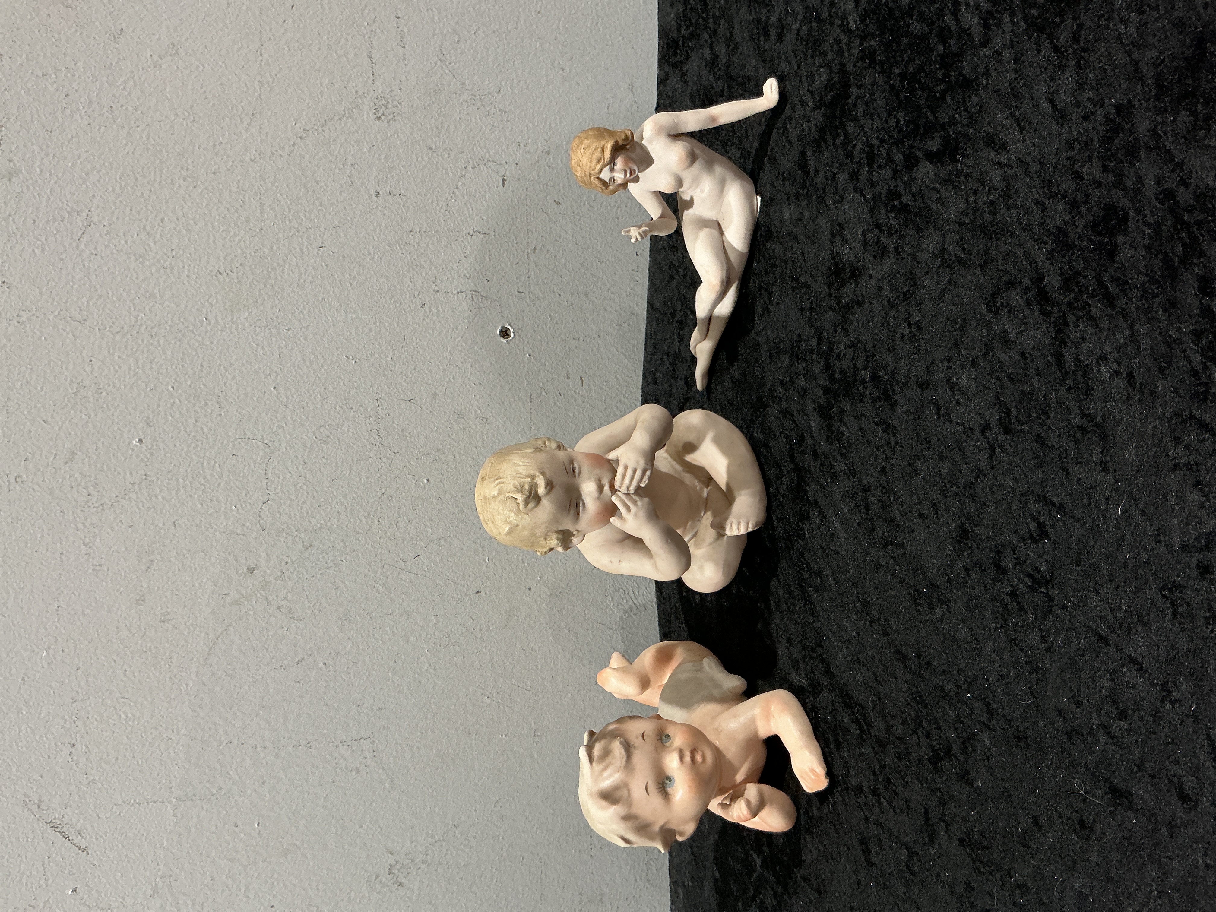 A Trio of Bisque Porcelain Piano Babies and Figurines