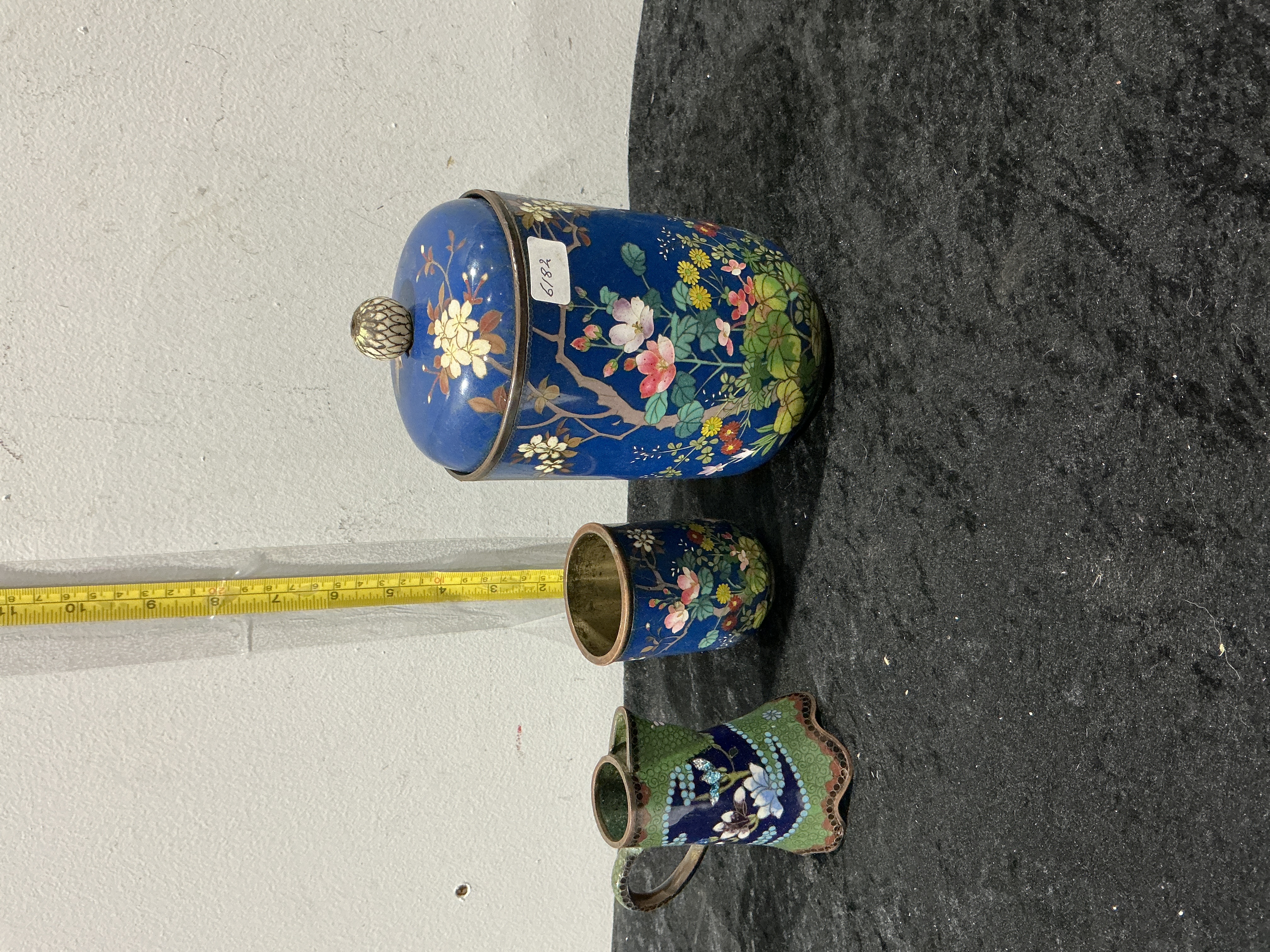 Chinese Cloisonné Enamel Jar, Cup and Pitcher