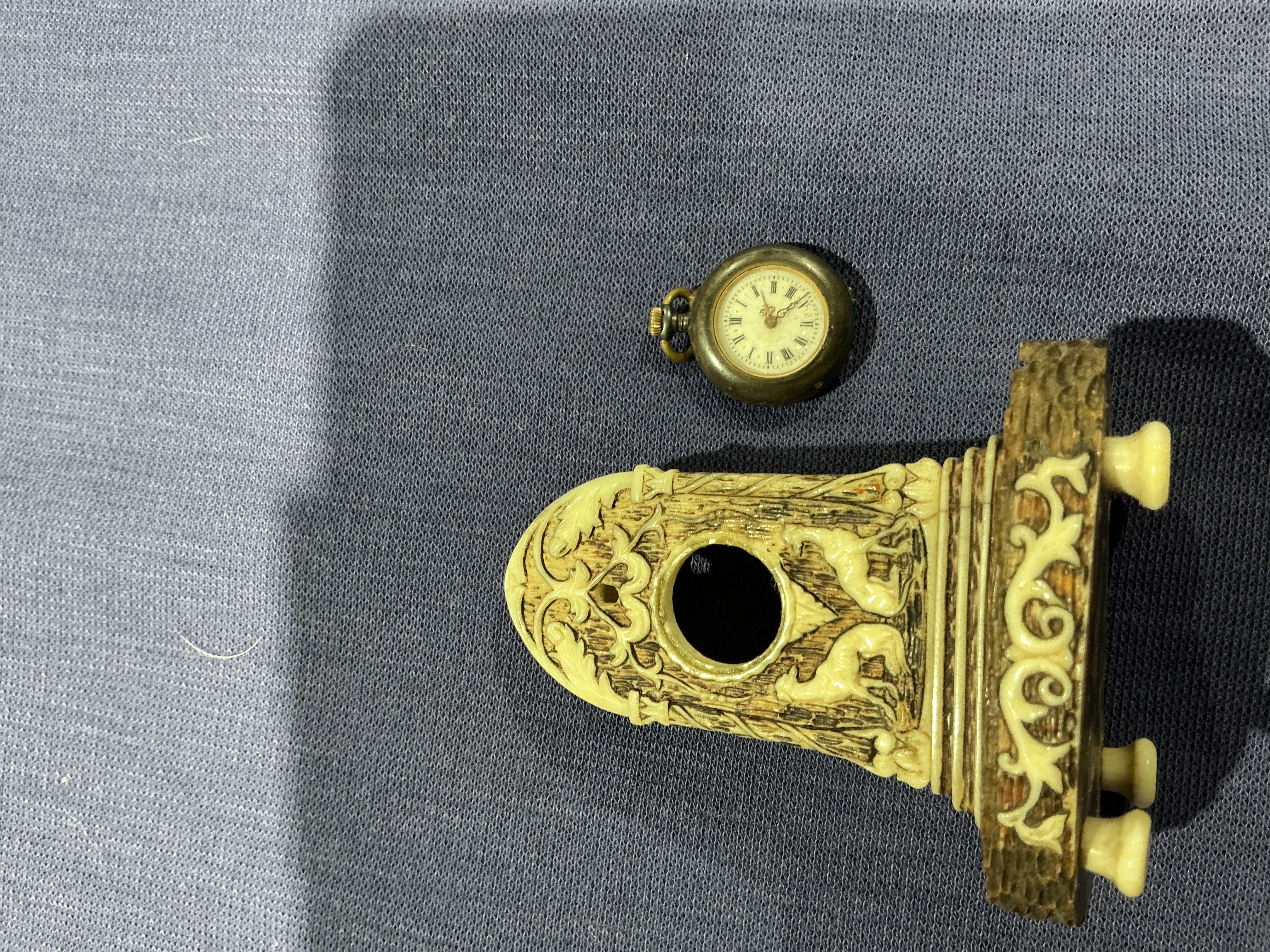 A 19th Century Carved Bone or Antler Watch Hutch in the Black Forest Style with Associated Pocket Watch Category: Metalware