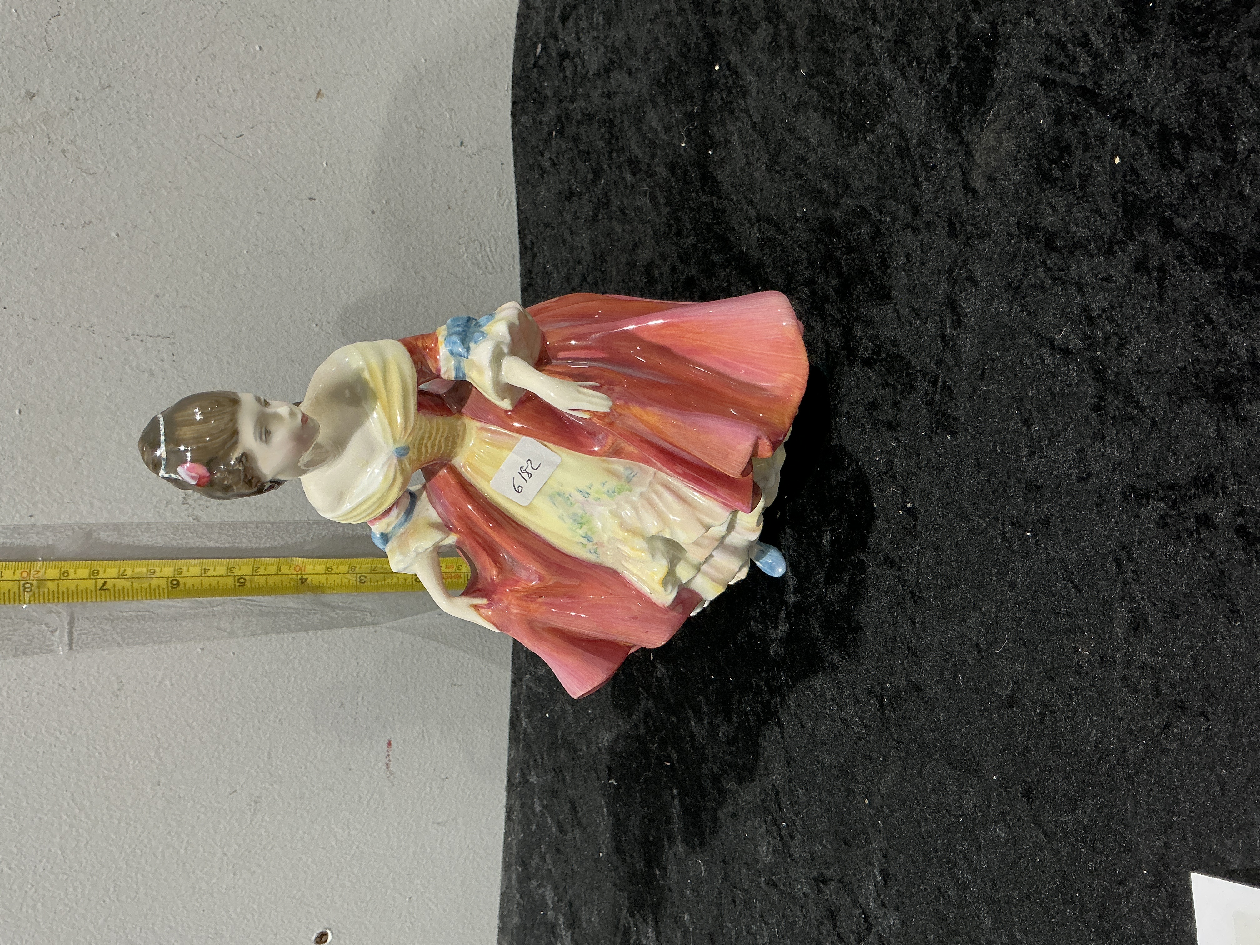 The figurine is in excellent condition with no visible chips, cracks, crazing, or signs of restoration. The delicate fingers and skirt edges are intact. There is a temporary inventory sticker numbered 2819 on the front of the skirt. Minor shelf wear is present on the unglazed foot rim, consistent with age and display.