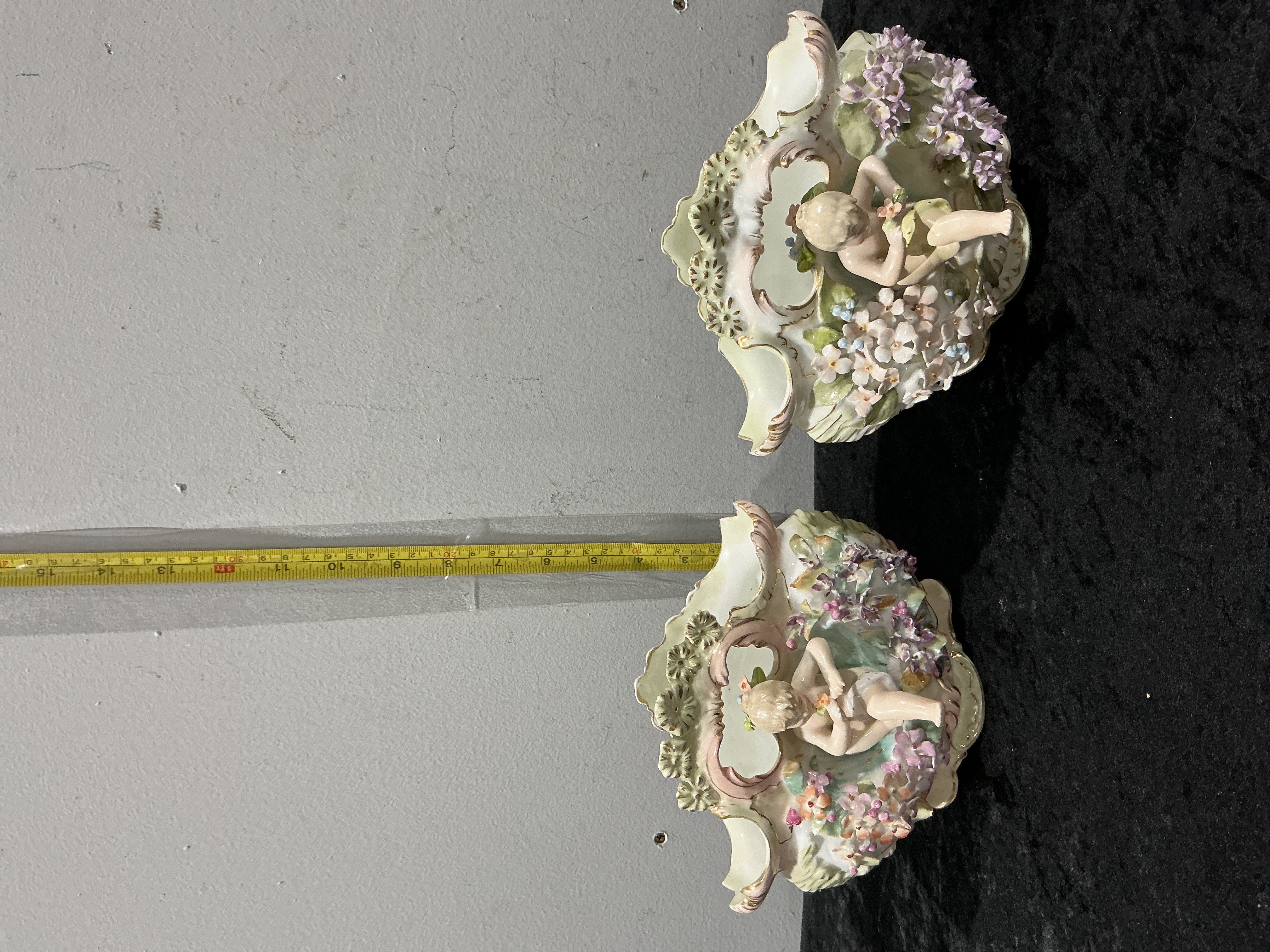 German Porcelain (Sitzendorf), Rococo-Style Cherub Wall Pockets, Model 7239