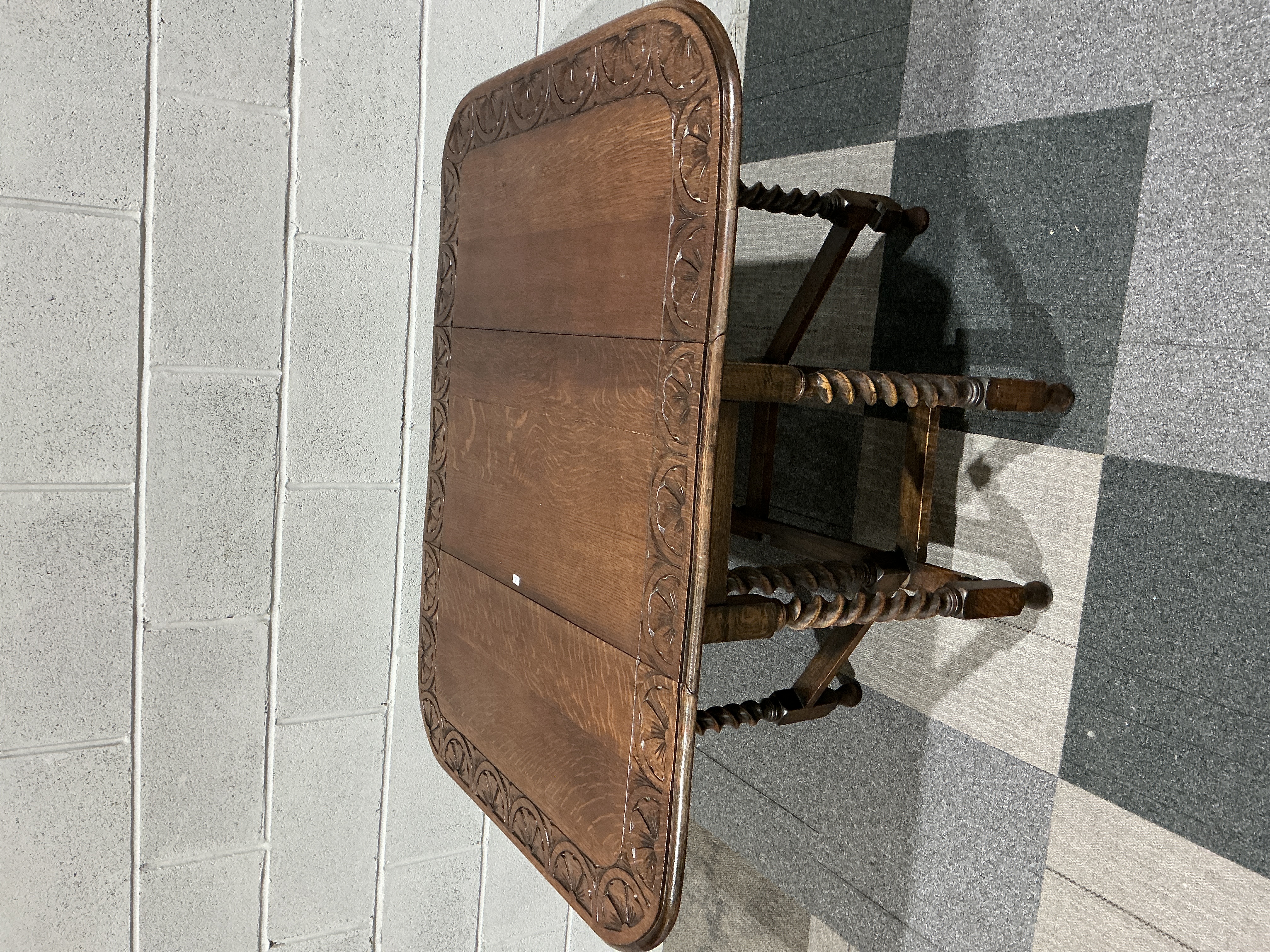 A Jacobean Style Carved Oak Barley Twist Gate-Leg Table