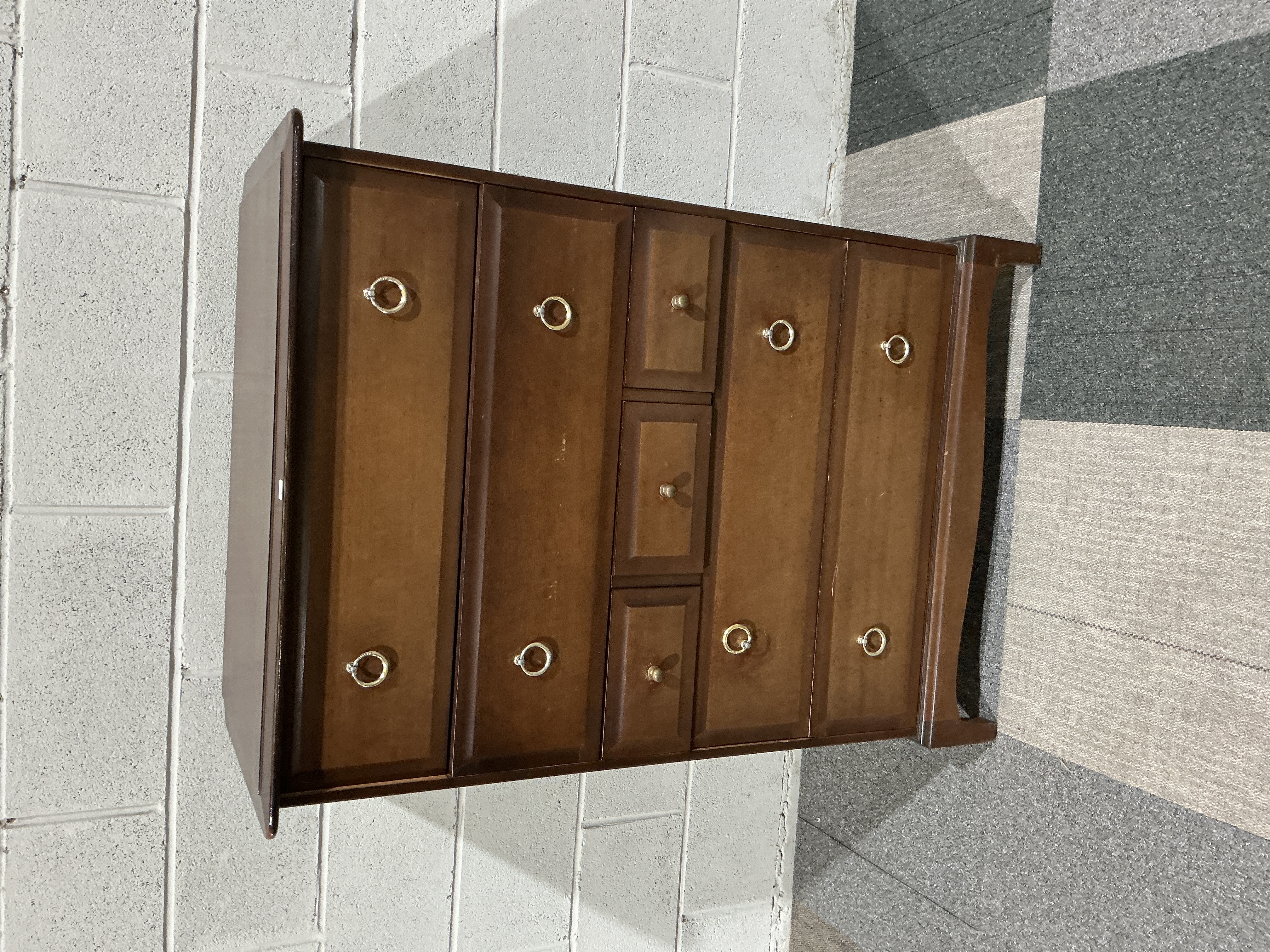 The chest is in fair condition, showing visible surface wear including scratches, scuffs, and minor finish loss consistent with age and use.