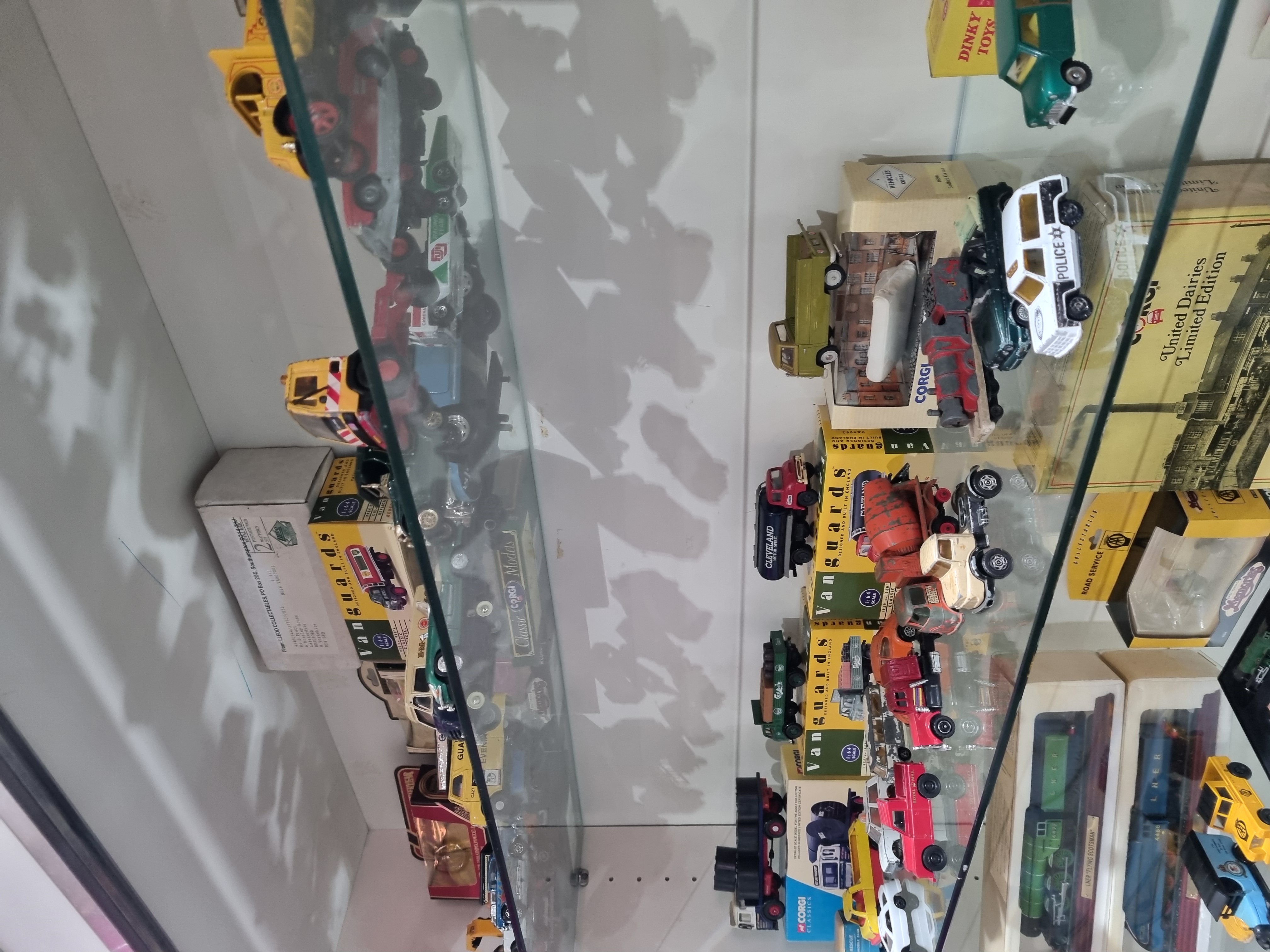 A Collection of Model Vehicles and Trains by Corgi, Dinky, and Lledo