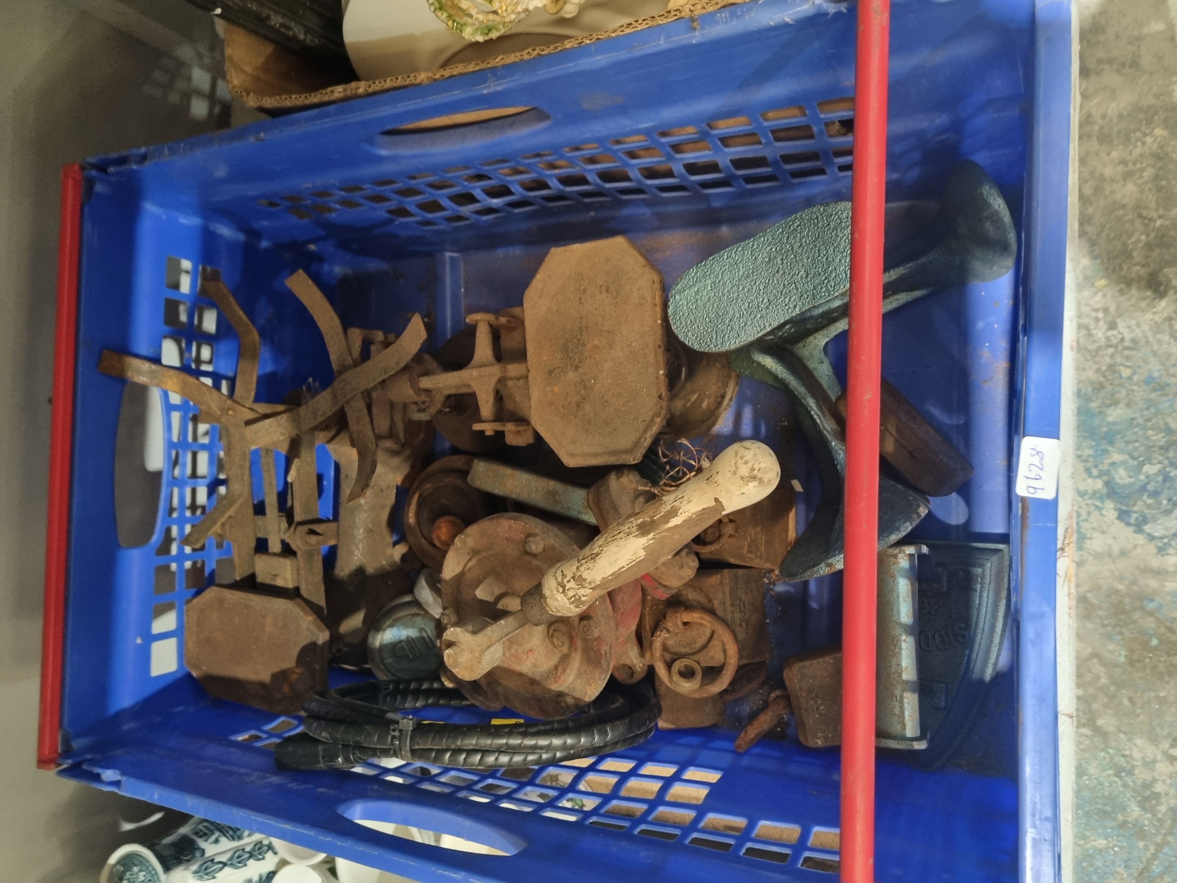 A Collection of Antique and Vintage Cast Iron Domestic and Trade Items including Siddons Flat Iron Base