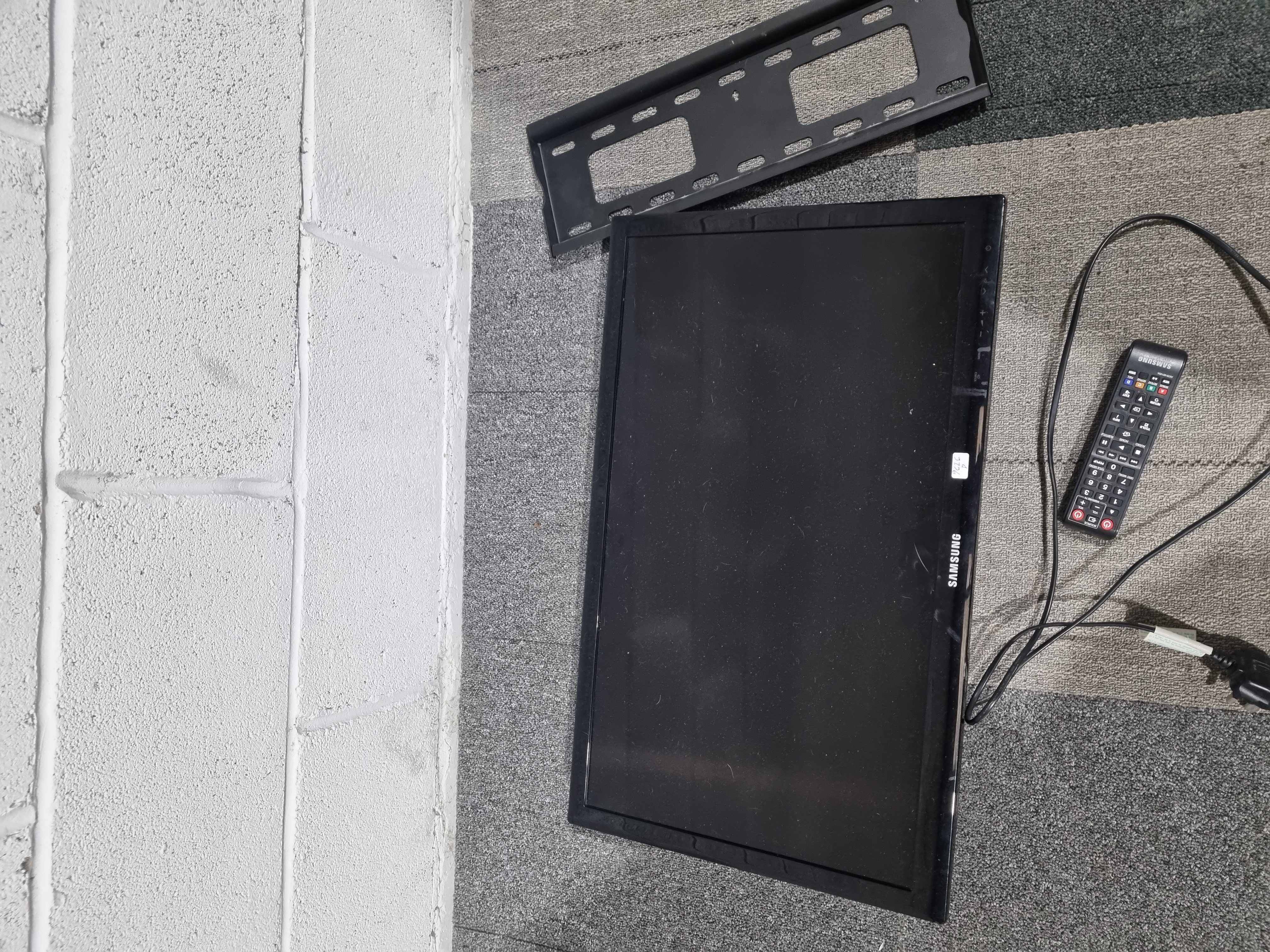 A Samsung UE26D4003BW 26 inch LED television. The unit features a 26 inch diagonal screen with HD Ready 720p resolution. This is a standard LED television and does not include built-in smart TV functionality. The rear identification label confirms the model number UE26D4003BW and model code UE26D4003BWXXU, indicating it was manufactured for the United Kingdom market. The label also states the unit was made in Hungary. Included with the television is a Samsung branded remote control, an attached power cable with a standard UK 3-pin plug, and a black metal wall-mounting bracket. The unit is not supplied with a tabletop stand.