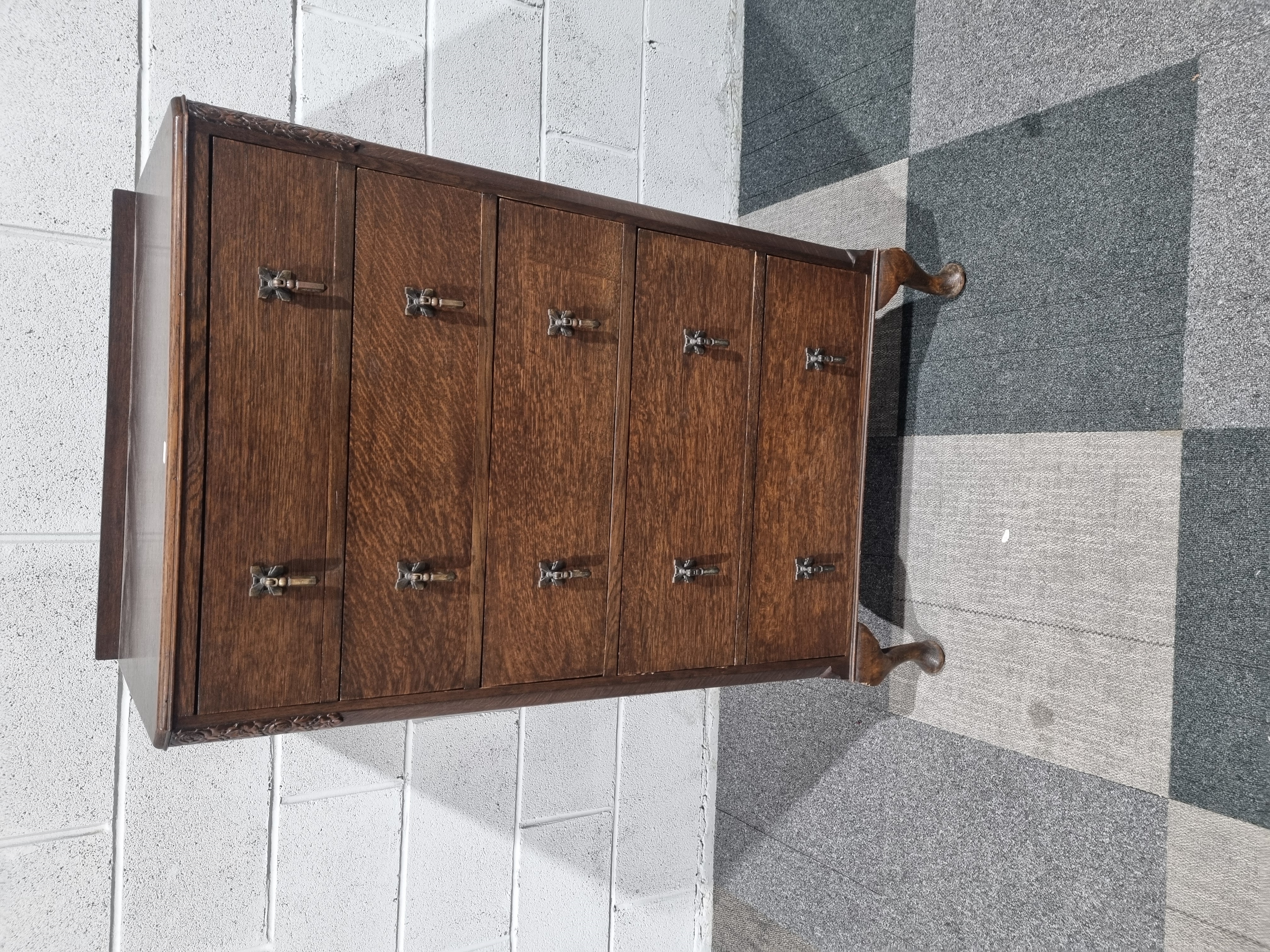 An early 20th-century oak chest of drawers in the Queen Anne taste
