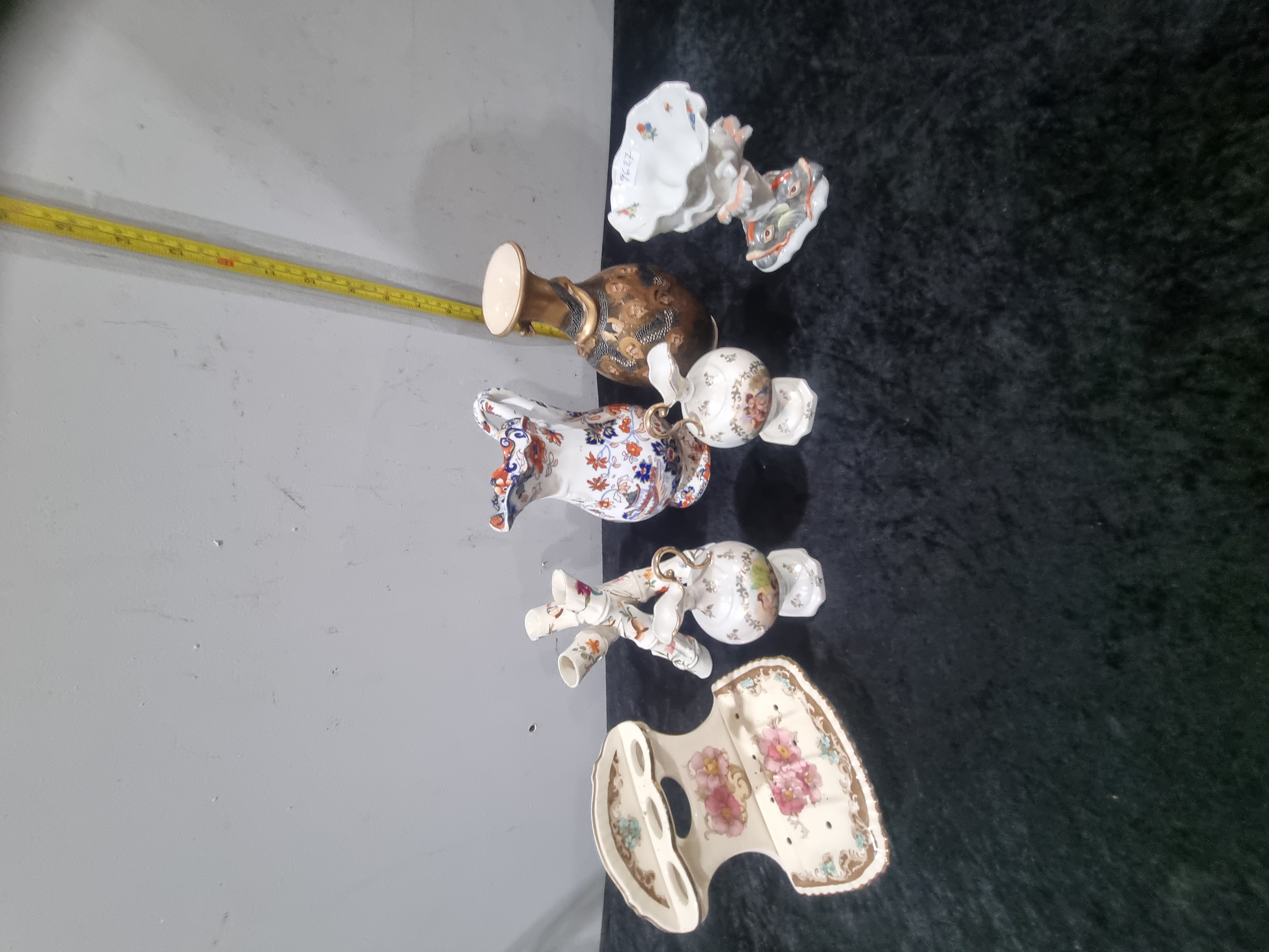 An Assortment of Decorative Ceramics including a Mason's Patent Ironstone Jug and a Porcelain Tulipiere