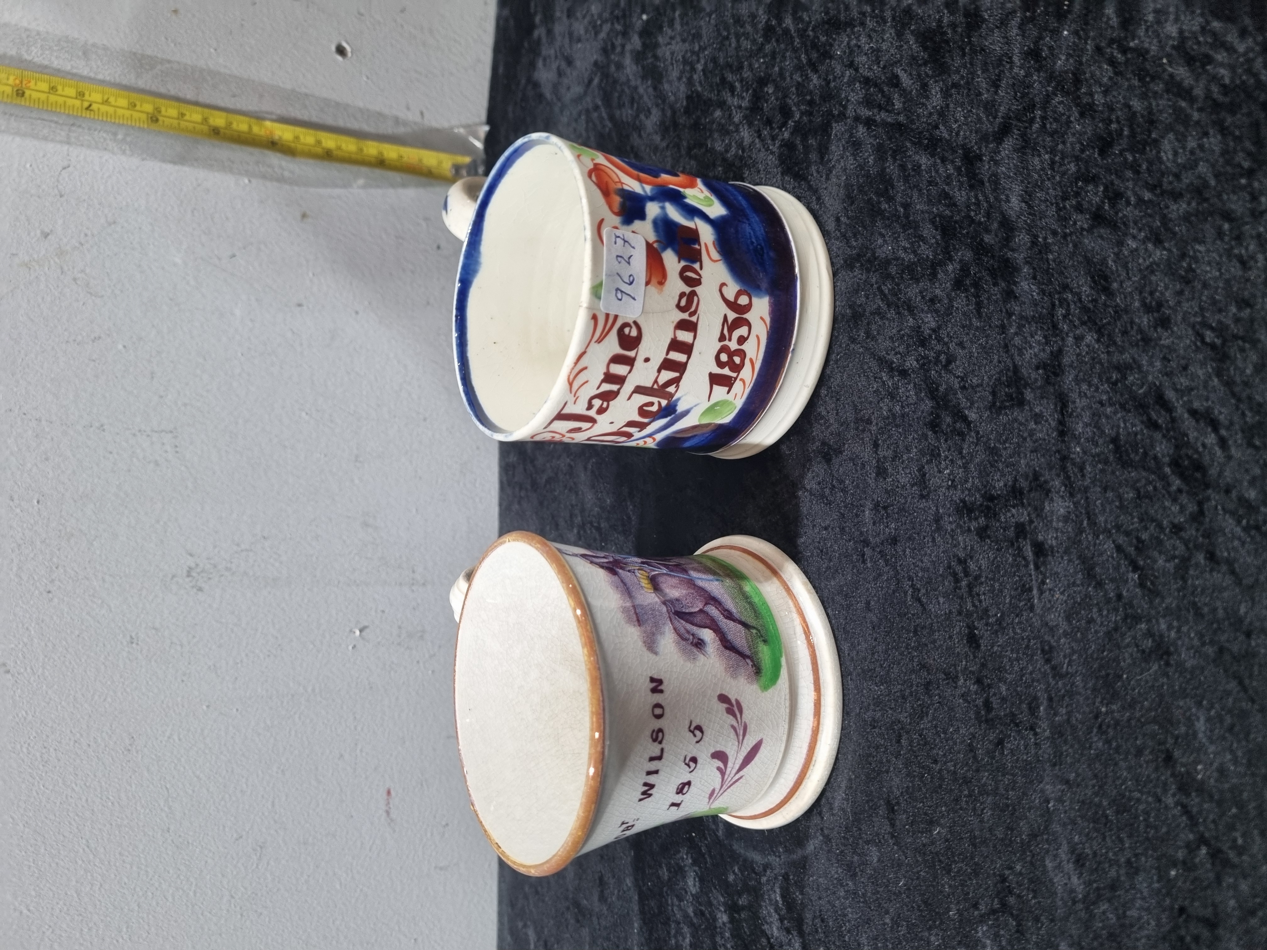 Two Victorian Hand-Painted and Named Earthenware Presentation Mugs dated 1836 and 1855