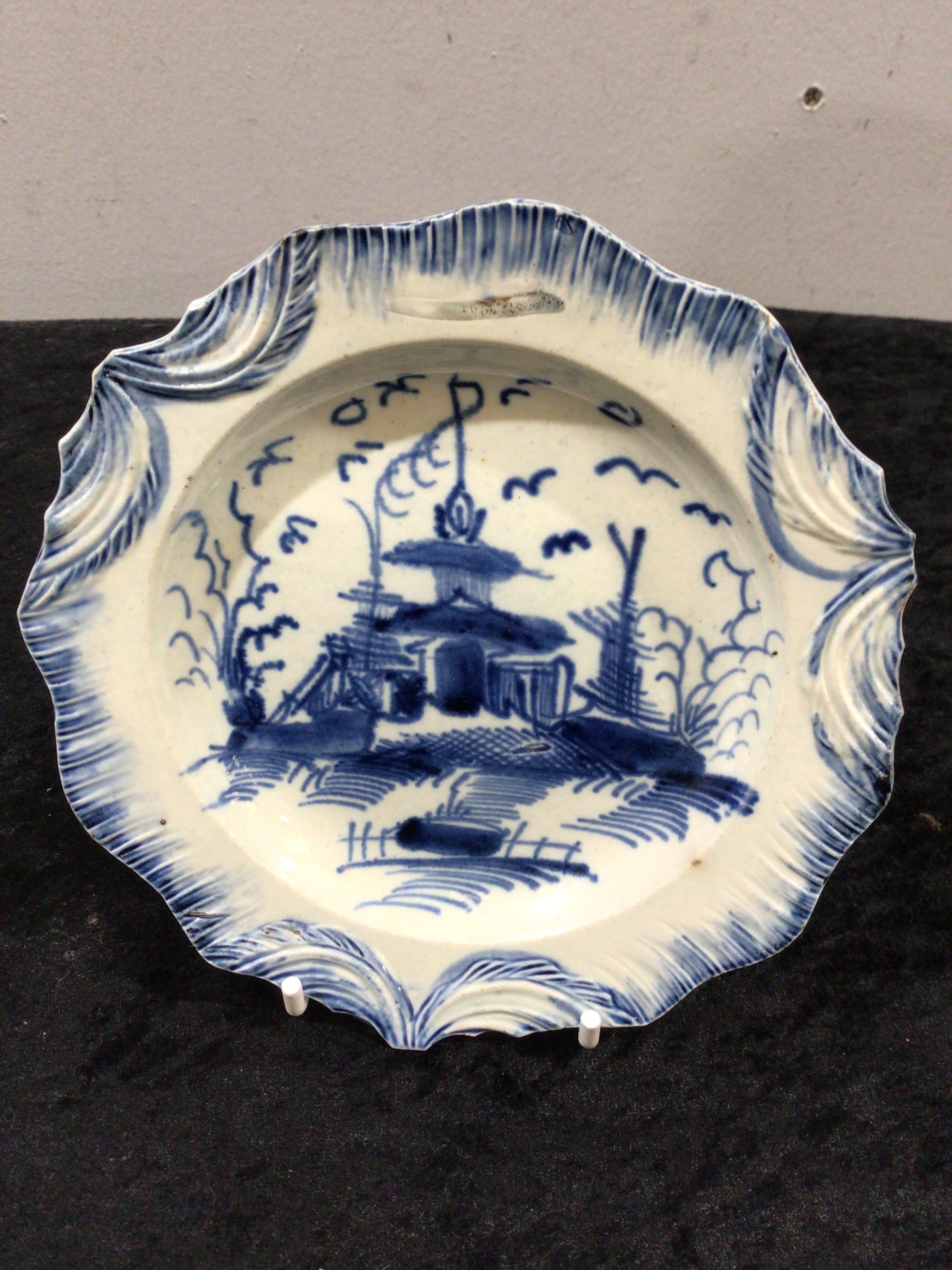 A Late 18th/Early 19th Century English Blue and White Pearlware Chinoiserie Pagoda Pattern Dish