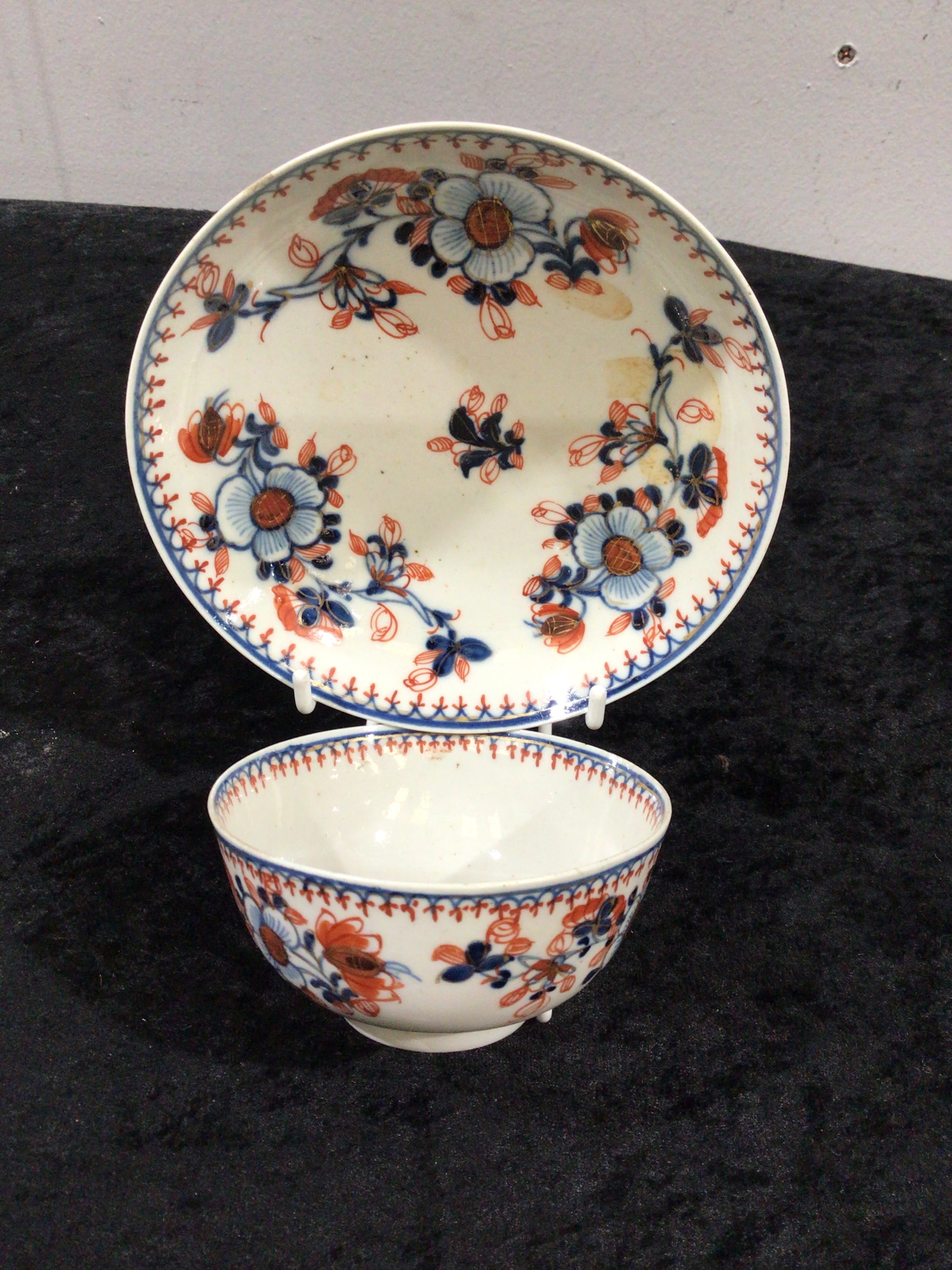 A Lowestoft Porcelain Asian Export Style Floral Cup and Saucer Set