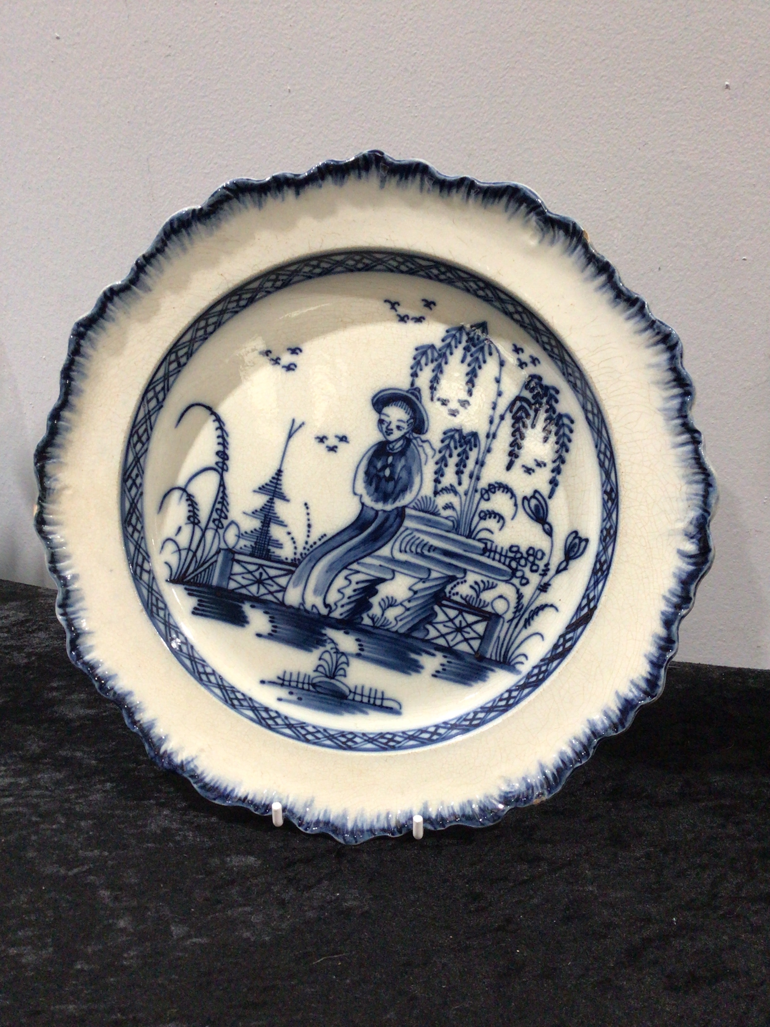 An English Pearlware Blue and White Chinoiserie Scalloped Edge Plate, Circa 1800