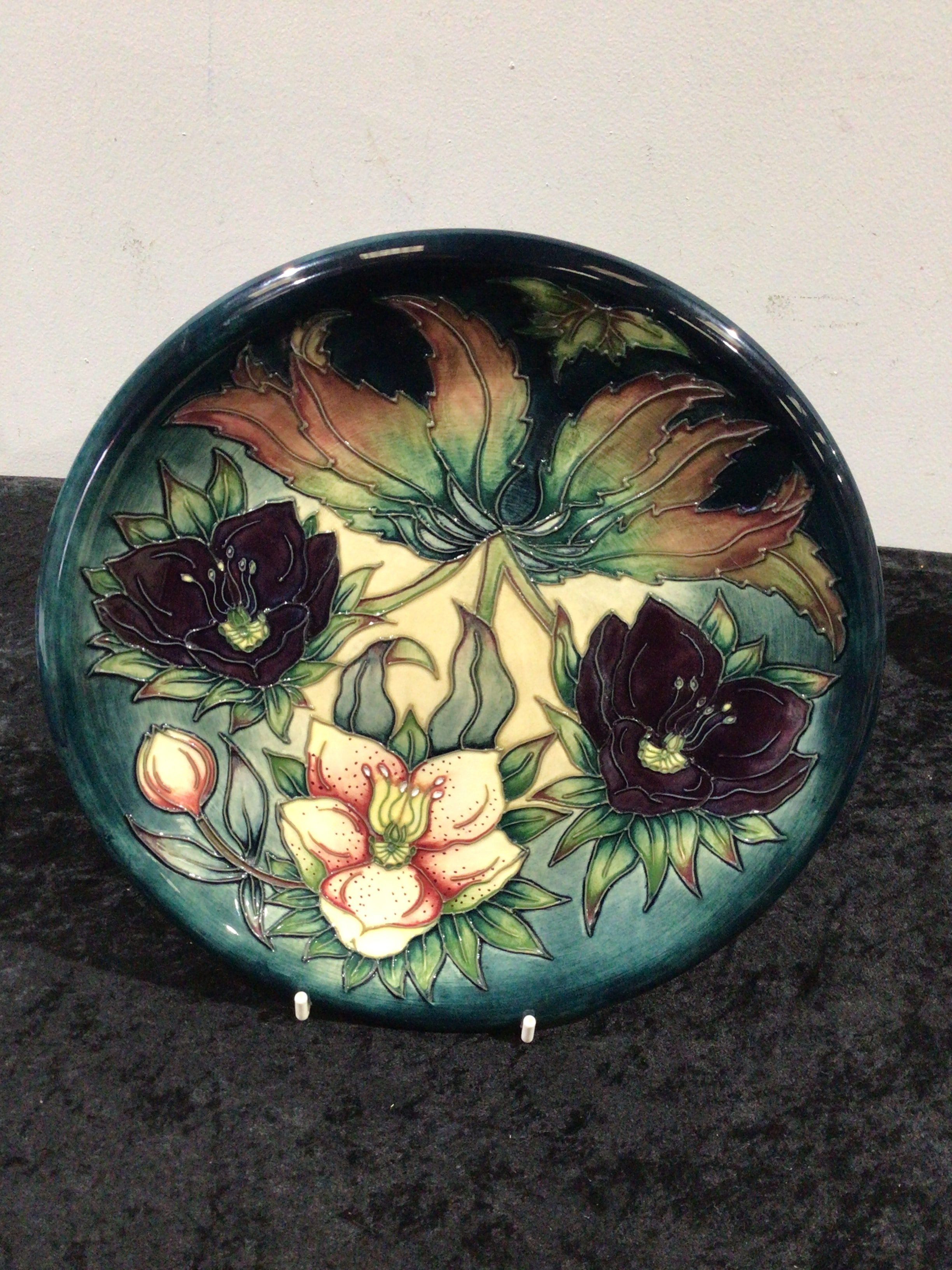 A Moorcroft Ceramic Charger Plate, Decorated with Hellebore Flowers, Initialed PM and WM, Dated 2009