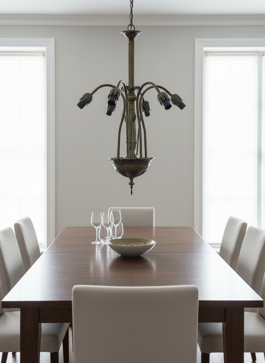 Vintage-Style Art Deco Five-Arm Chandelier, Antique Brass/Bronze
