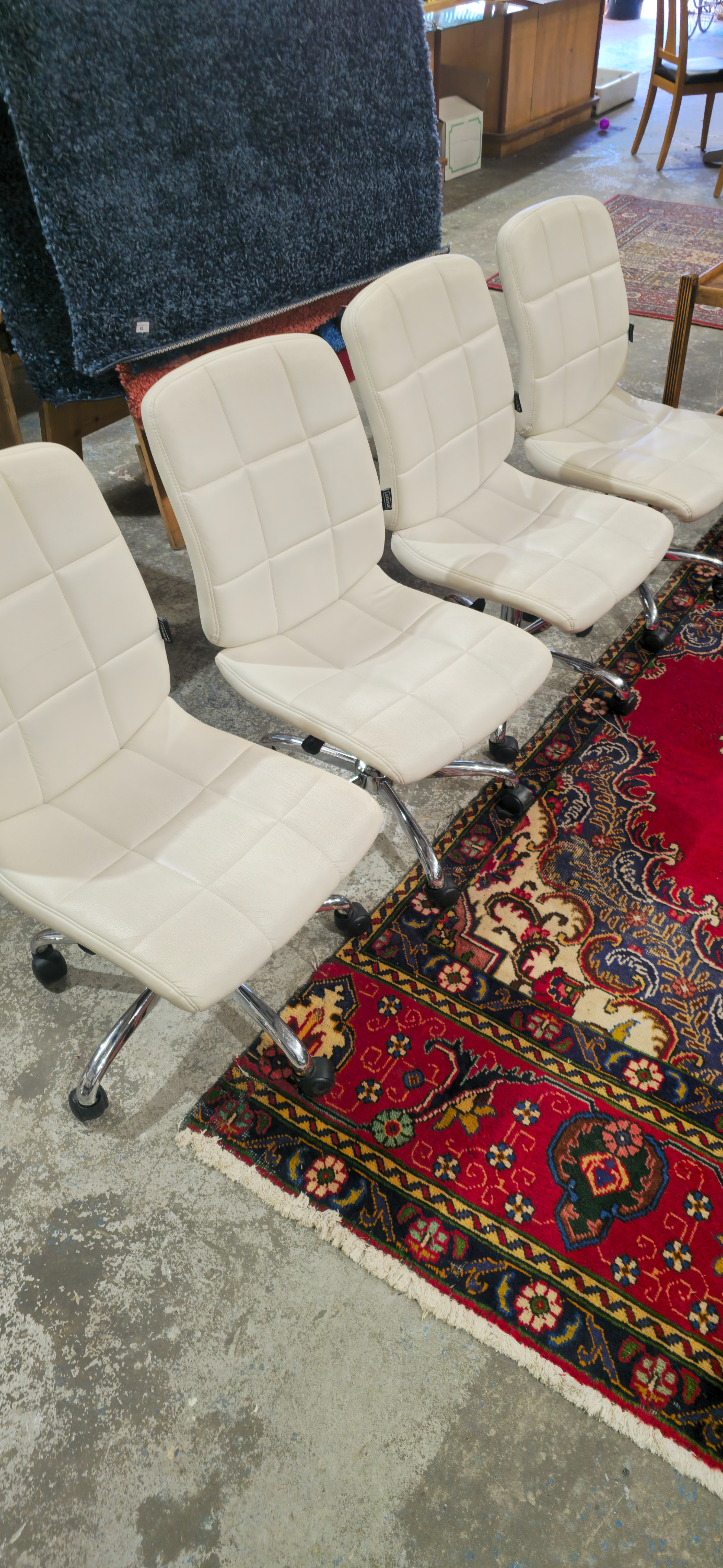 4 x staples white leatherette office chairs