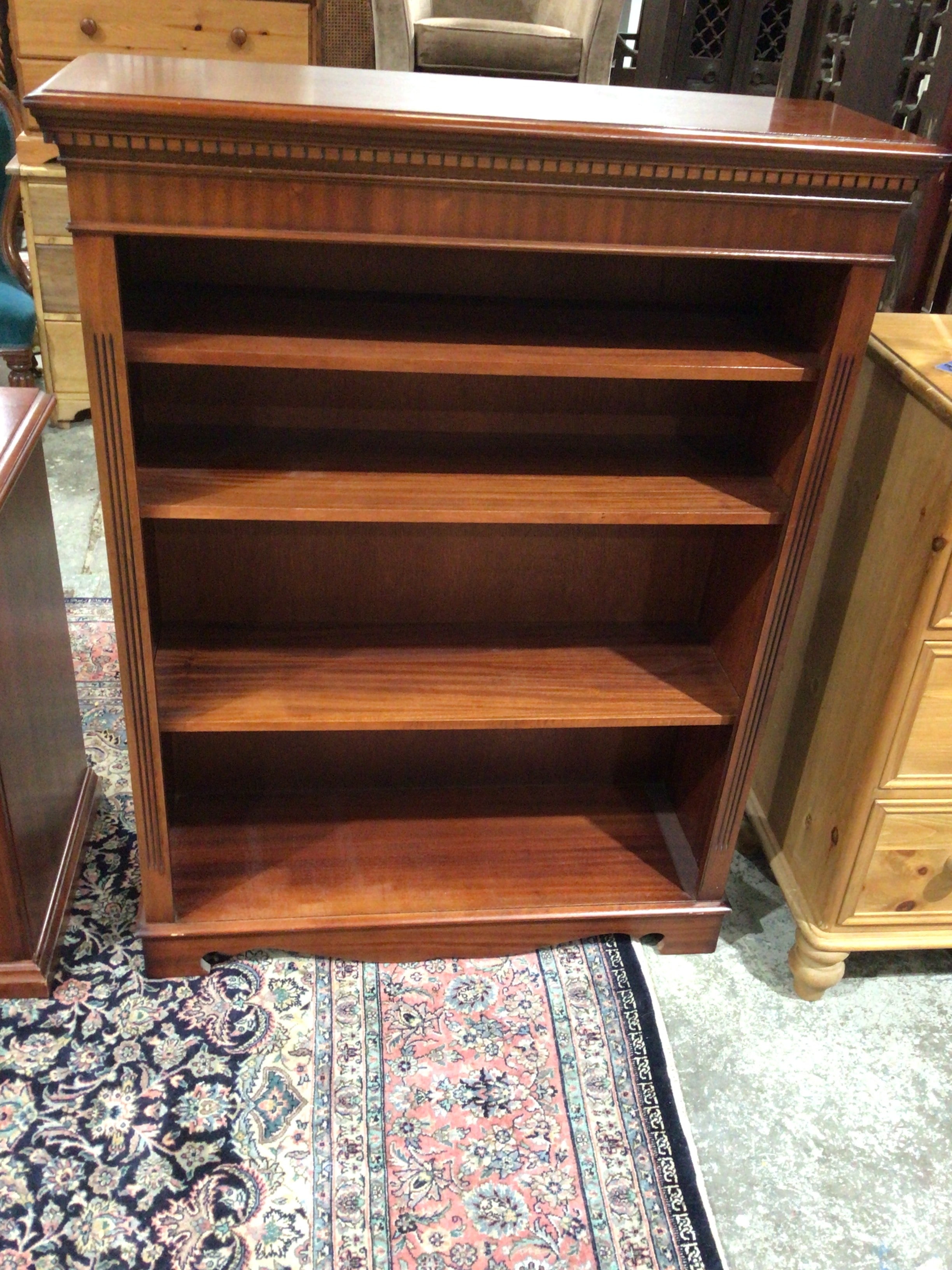 A Regency Style Mahogany Open Bookcase with Inlaid Details