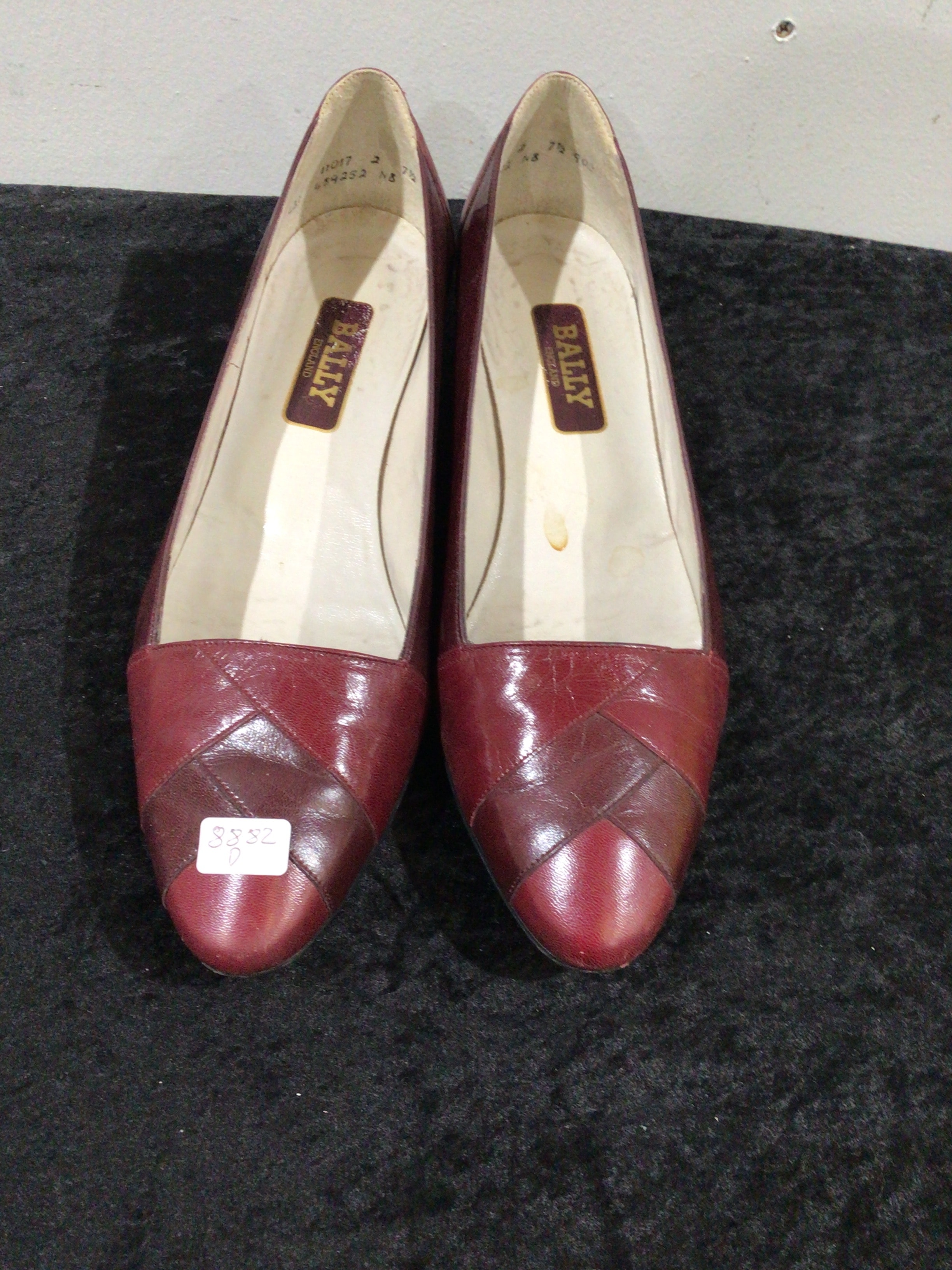 A Pair of Bally Women's Burgundy Leather Pumps, Size 7, Made in Switzerland