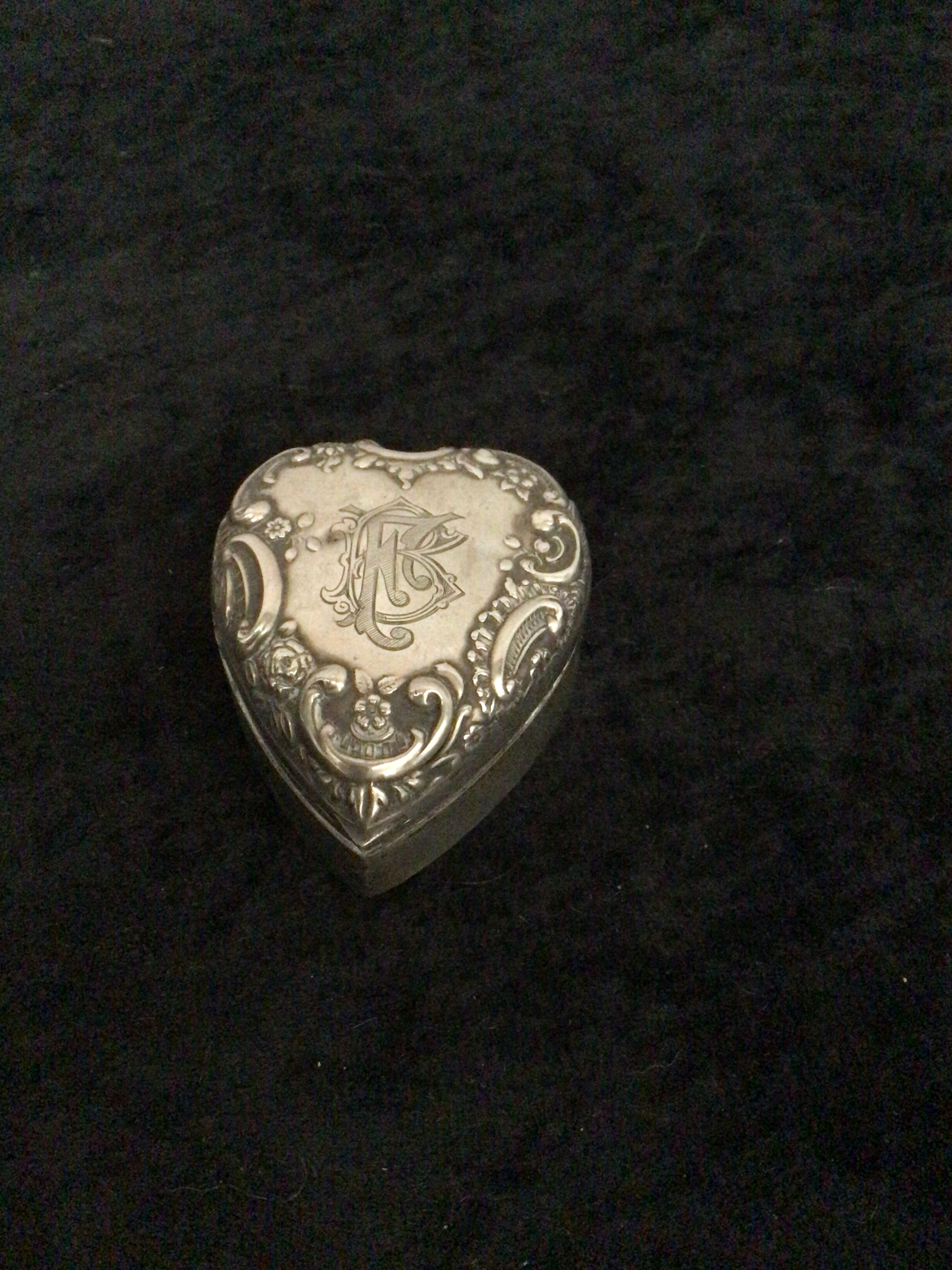 Silver Rococo-Style Heart-Shaped Trinket Box with Monogram