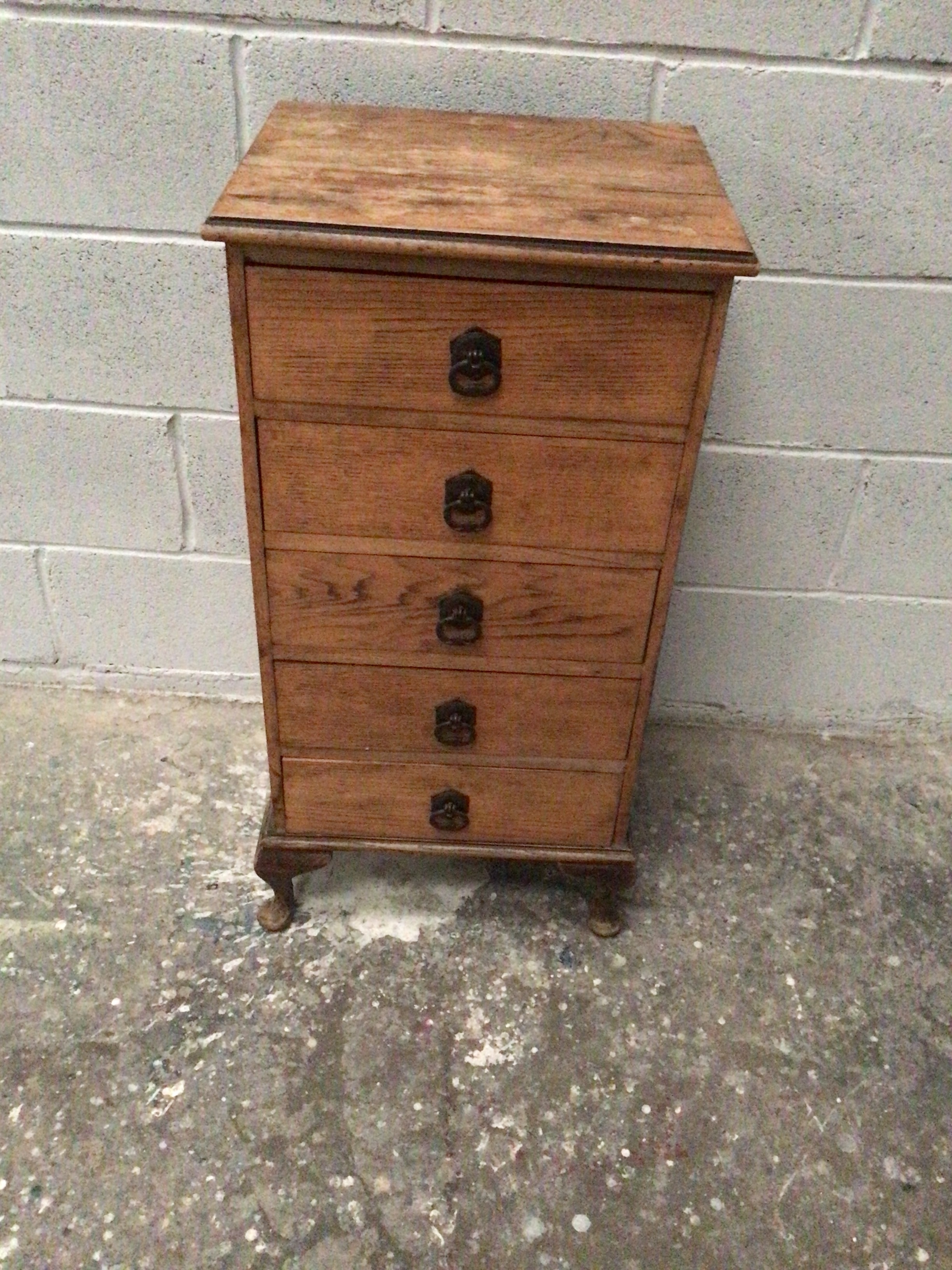 An Arts & Crafts Oak Pillar Chest of Five Drawers