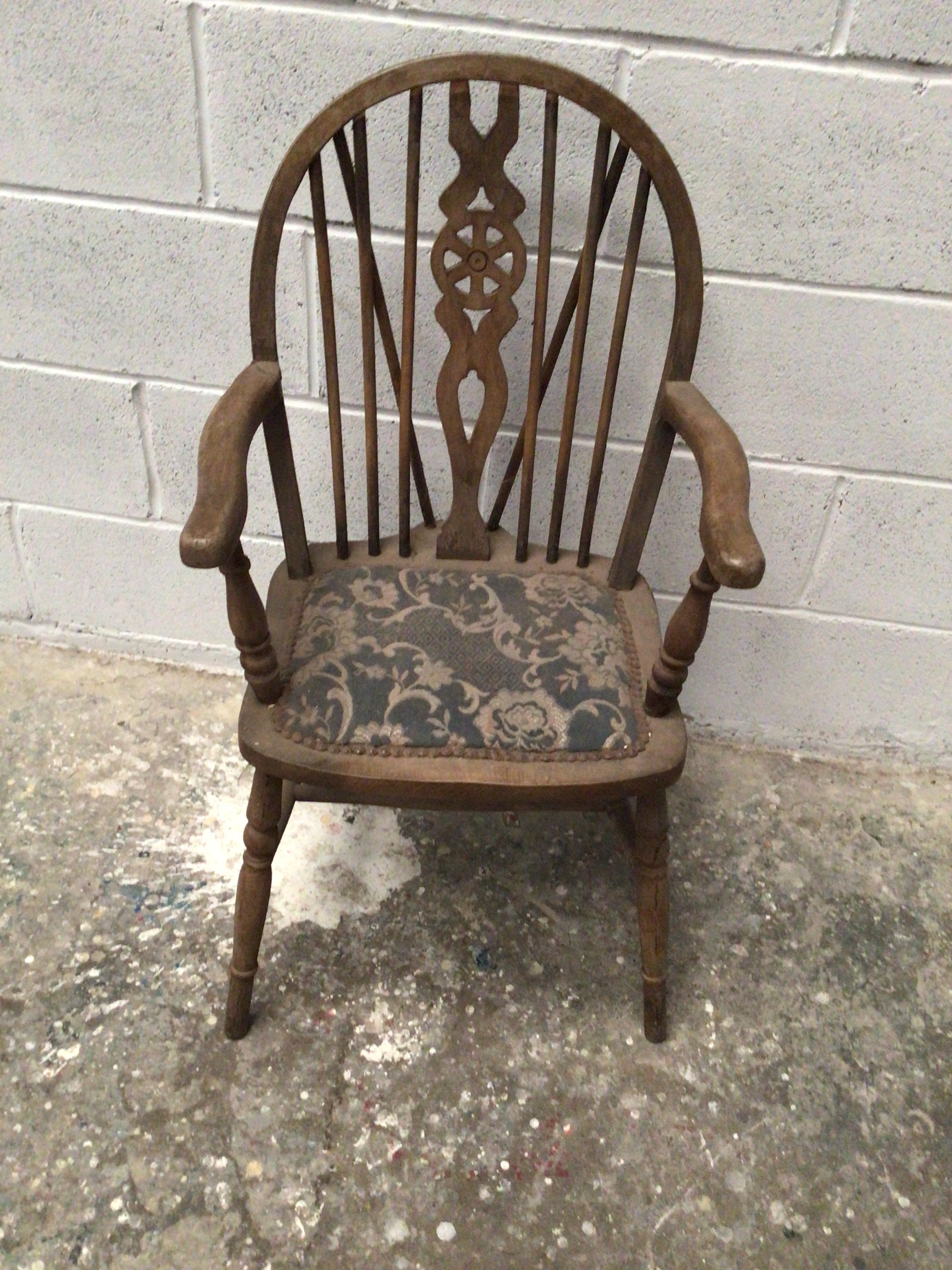 Antique 19th Century Ash and Elm Windsor Wheelback Arm Chair