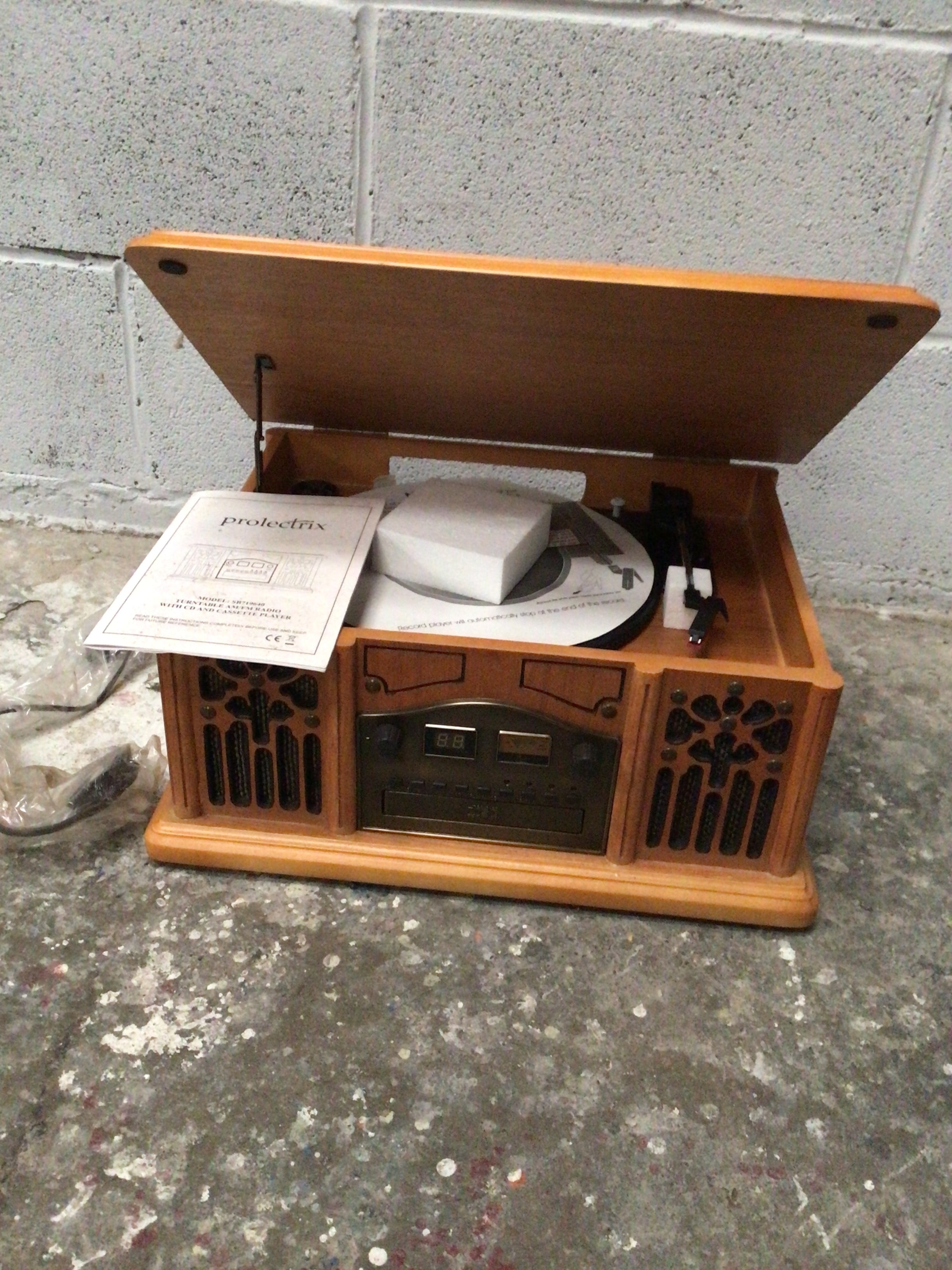 A Prolectrix Retro Style Music Centre, Model SB719640, with Turntable, AM/FM Radio, CD and Cassette Player