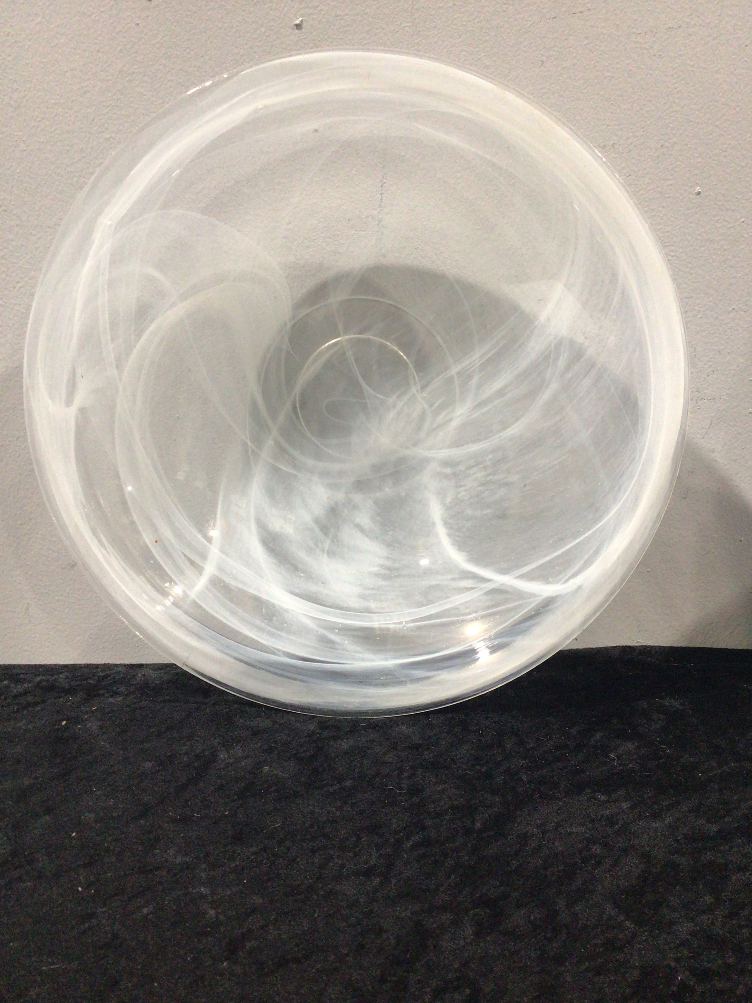 A Modern Clear and White Swirl Art Glass Bowl, signed 'Le gras