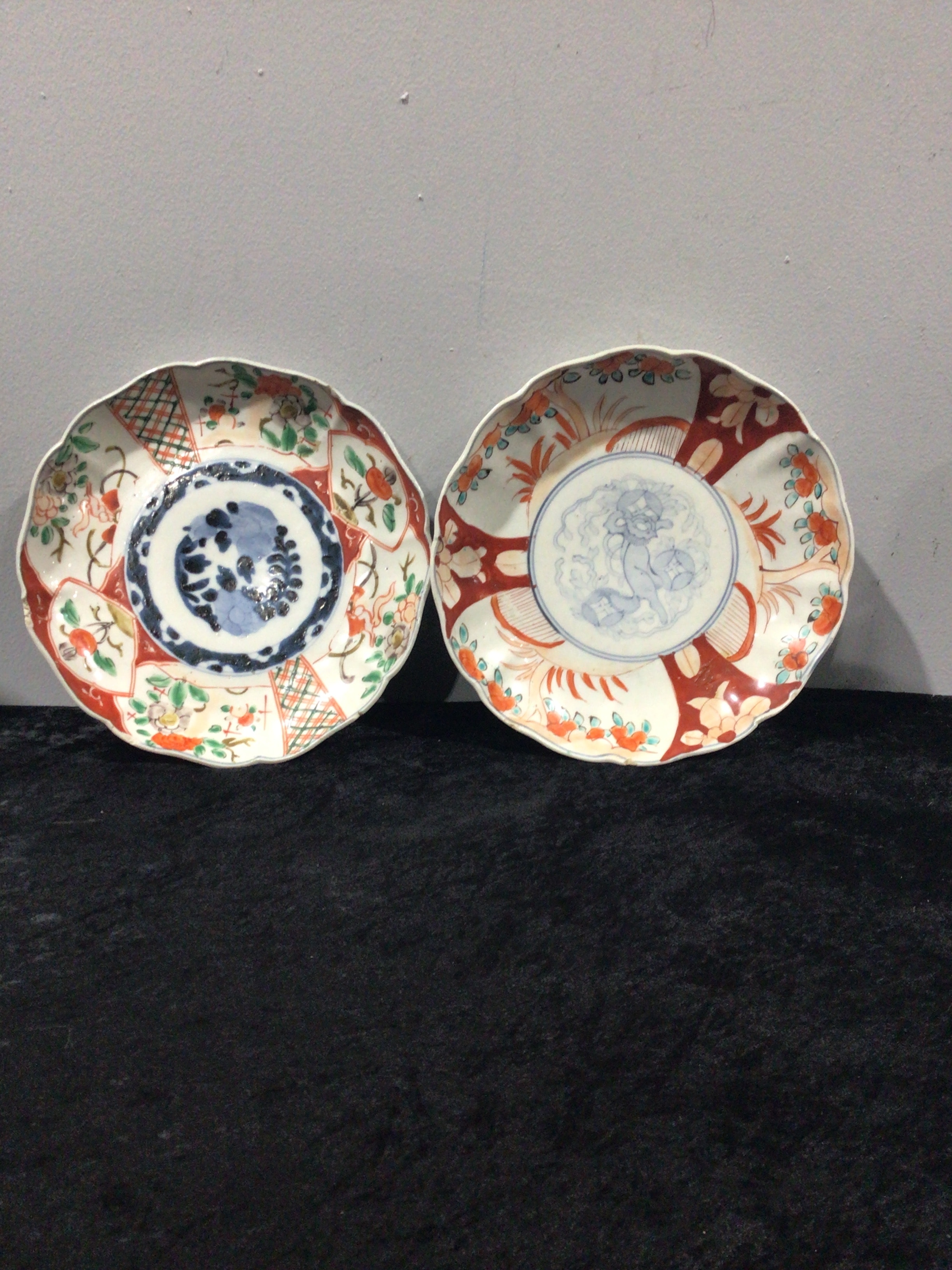A Pair of 19th Century Meiji Era Japanese Imari Scalloped Porcelain Plates