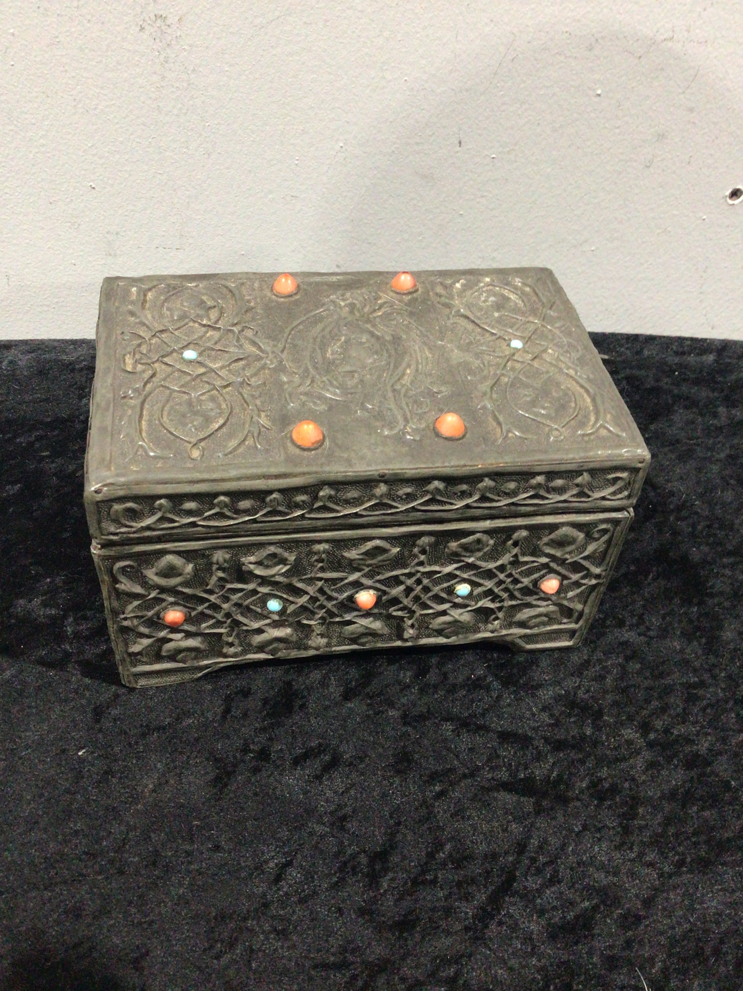Art Nouveau French Jeweled Metal Repoussé Box, Attributed to Alfred Daguet