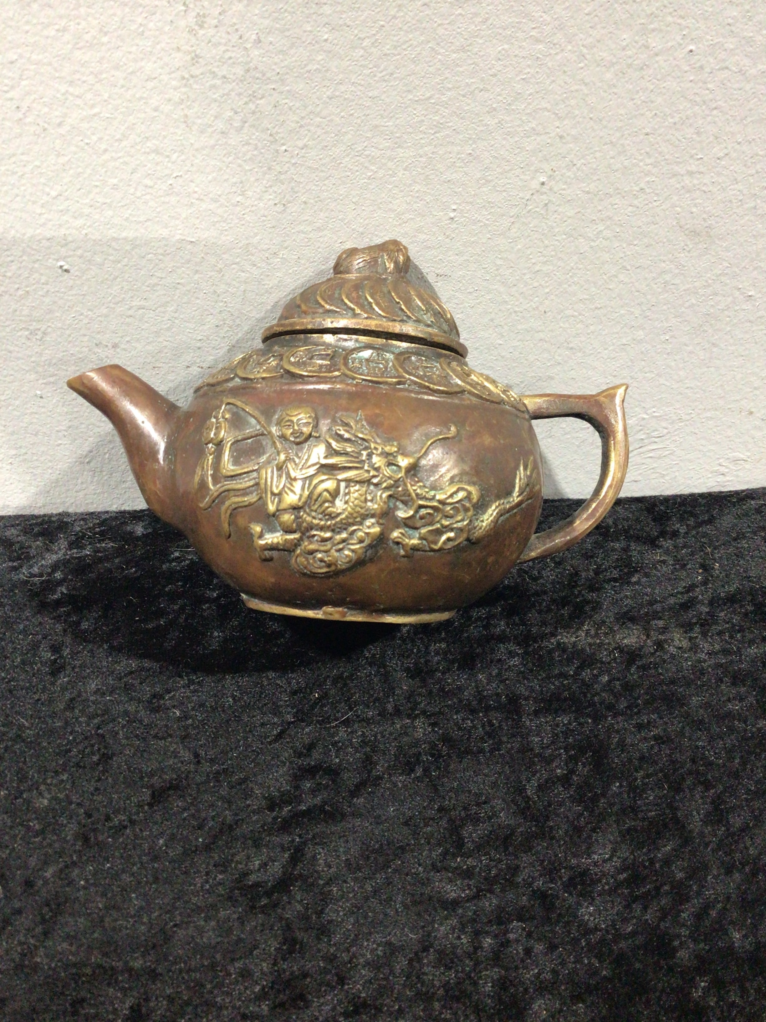 Antique Chinese Bronze Daoist Figure on Small Teapot,