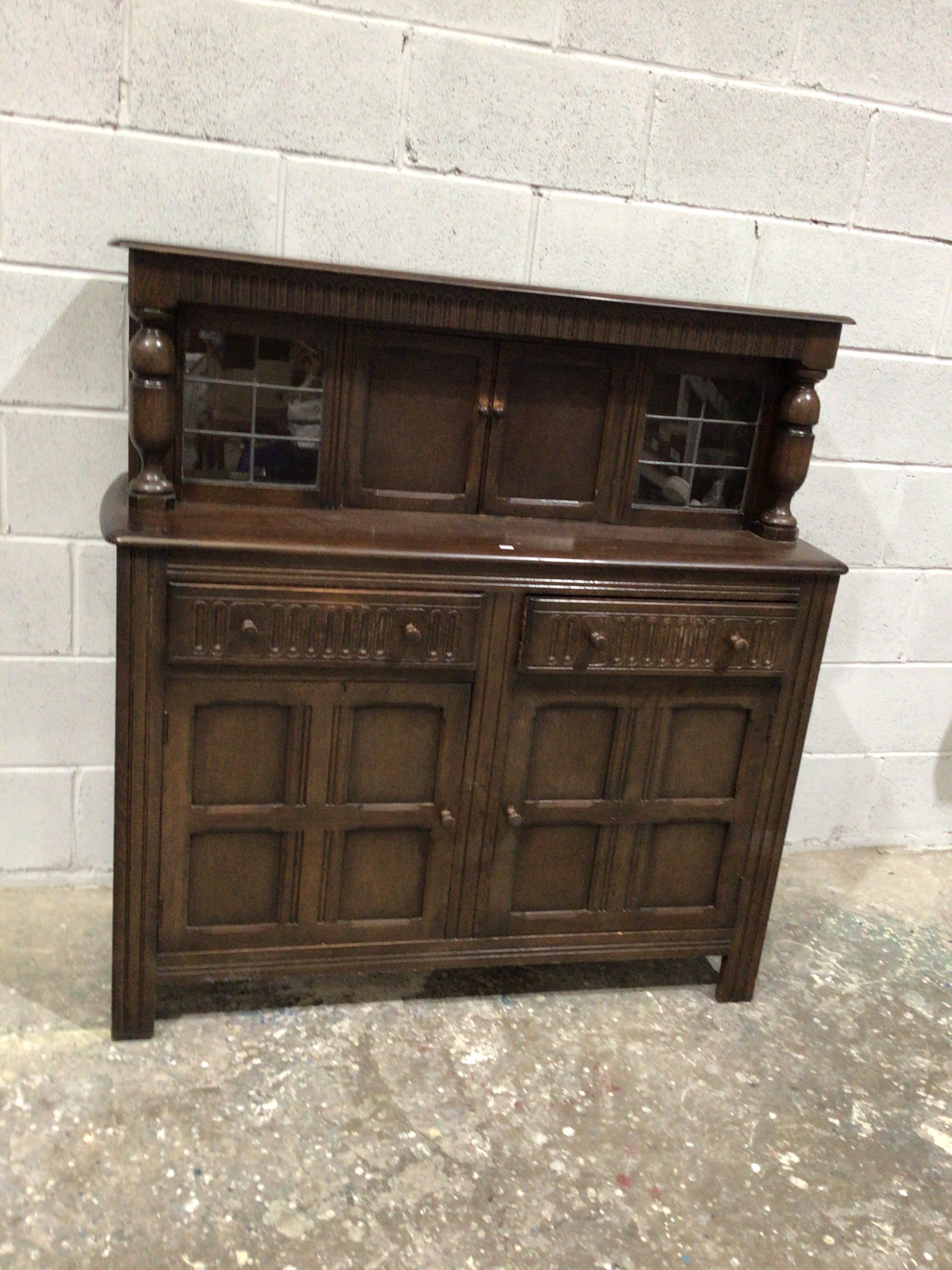A Priory Style Oak Court Cupboard Sideboard with White Rose of York Badge